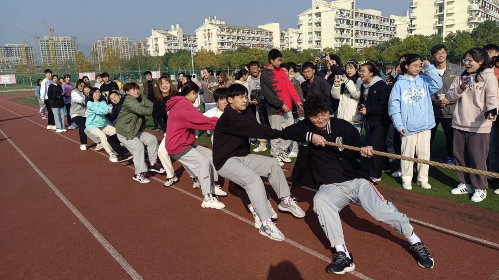 此次比赛以班级为单位,共有34支队伍参赛,赛制分为淘汰赛、决赛两个阶段。随着一声哨音,比赛如期而至,参赛选手摩拳擦掌、蓄势待发,班级其他成员也自发来到现场组成啦啦队,“一二,加油”,参赛队伍使足了劲,憋红了脸,哨声、呐喊声、助威声此起彼伏,激荡在整个操场上空。