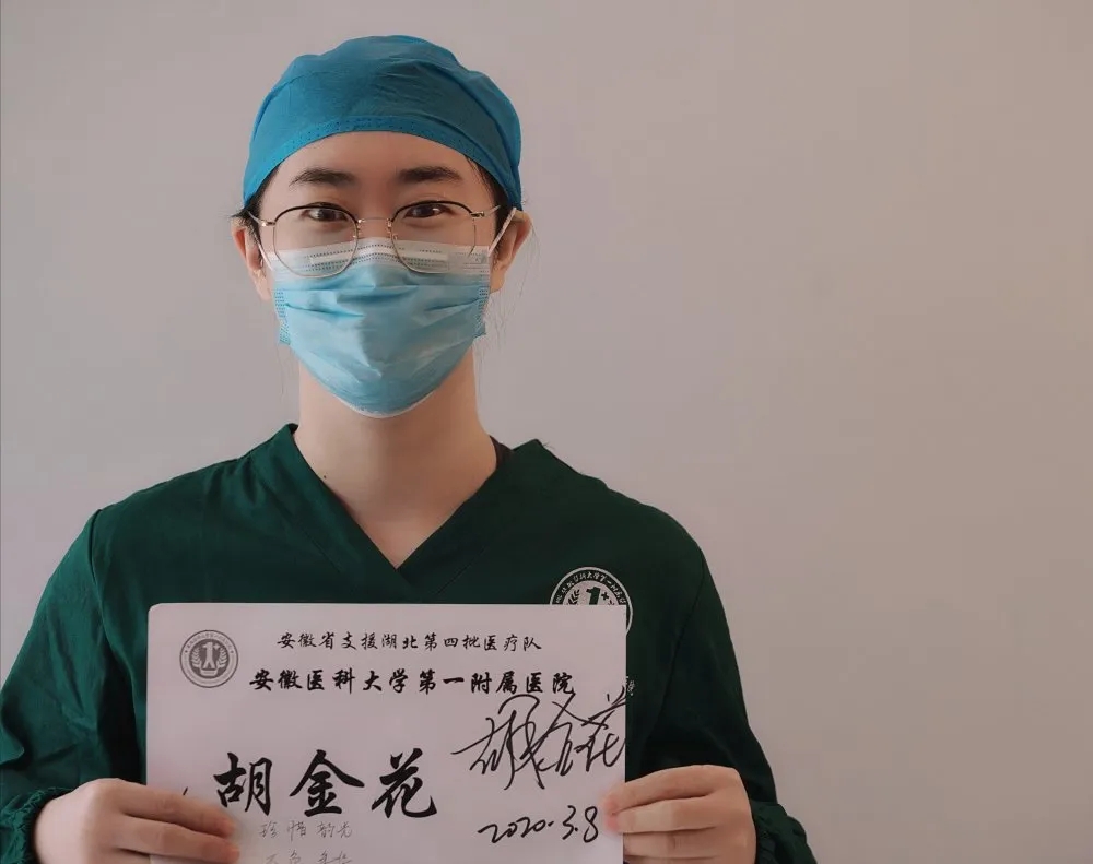 我叫胡金花,2010年毕业于安庆医药高等专科学校,实习于安徽医科大学第一附属医院。毕业后就职于安庆市立医院,从事心胸外科及心胸外科ICU护理工作七余年,2017年9月通过安徽医科大学第一附属医院招聘考试,顺利成为安医高新院区心脏大血管外科ICU的一员。我参与高新院区心脏大血管外科ICU开业工作,见证安徽省首例心脏移植手术的顺利完成。并于今年2月13日,我参加安医大一附院援鄂医疗队,是安徽省第四批医疗队,我们医疗队整建制接管华中科技大学同济学院附属协和肿瘤中心一个重症病区。