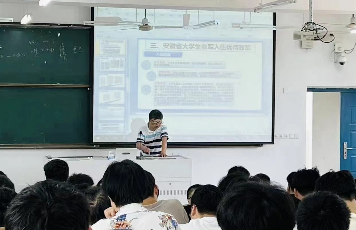 为筑牢广大青年学子的国防观念,根植参军报国的家国情怀,5月30日,护理学院邀请学生处黄建斌老师来我院开展“参军报国,不负韶华”征兵宣传活动。护理学院2023届毕业班全体男生参加。