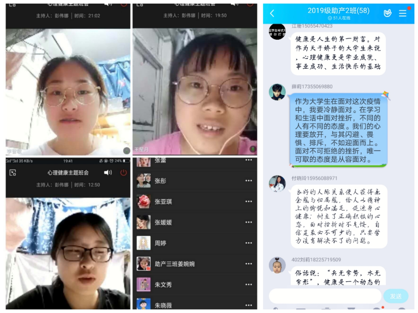 系心理辅导站组织各班开展的主题班会,让心理健康教育在全系各年级、各班级、个人得到落实。本次班会各班围绕抗击疫情和疫情带来的影响,以学生的心理健康问题为主要内容,通过观看学习主题教育视频、PPT、文档等形式在线上开展班会参与学习,普及心理健康知识,引导学生自觉学习心理调适方法,主动进行心理健康自助互助,积极应对疫情的心理潜在伤害。