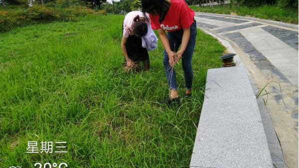 ⑦2020年9月,校园内“清扫杂草”志愿者服务活动——慧山区域