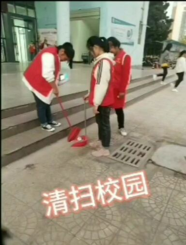 2019年9月“美丽校园 从我做起”——打扫食堂门口
