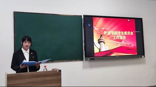 正值党的二十大召开之际,为深入学习贯彻习近平新时代中国特色社会主义思想,进一步落实青年学生的思想价值引领,结合学院学生会的工作实际,做好新形势下的学生工作,按照校团委要求,经护理学院团总支研究决定于2022年10月31日召开护理学院第四次学生代表大会。参加本次会议的有护理学院党总支副书记路红春、团总支老师以及学生代表。本次大会由学生会学习实践部部长胡子俊主持。