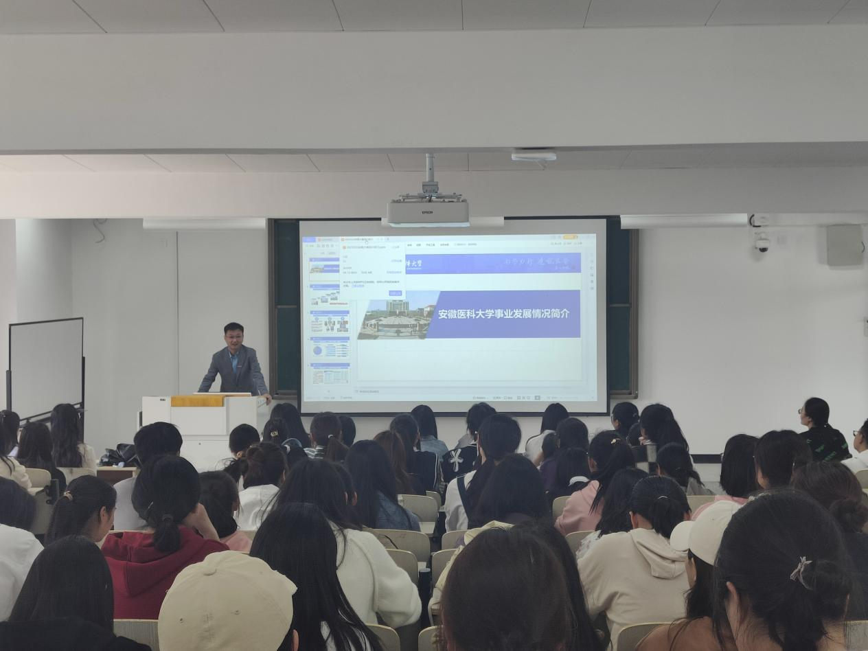 为持续提升学生就业能力,增强就业信心、激发就业热情,2023年4月12日,我校邀请安徽医科大学学工部(处)副部(处)长、安徽医科大学大学生就业指导中心副主任杜文海来校为21级本科班学生作就业指导专题讲座。我校共120名本科班学生和辅导员到场聆听讲座。