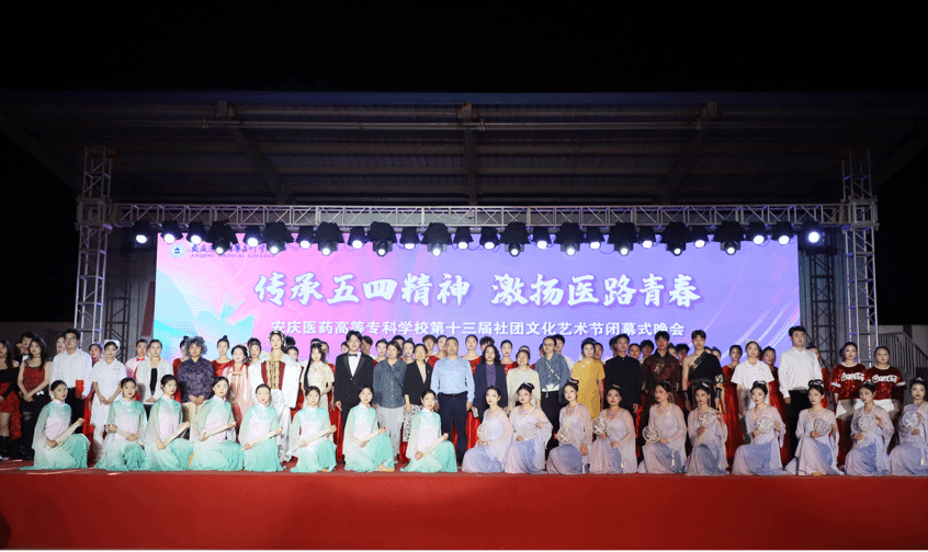 五月是充满希望的季节,五月是青春的季节。5月15日晚,由校团委主办、学生会、社团管理服务中心、各学生社团联合承办的第十三届社团文化艺术节闭幕晚会在校田径场成功举办,校领导朱三九、陈琪出席,学生处、团委负责人、各学院党总支副书记、团总支及学生社团指导老师与800余名学生一起观赏演出。晚会以“传承五四薪火,激扬医路青春”为主题,表演形式丰富多彩,展现出青年学子的青春与活力。