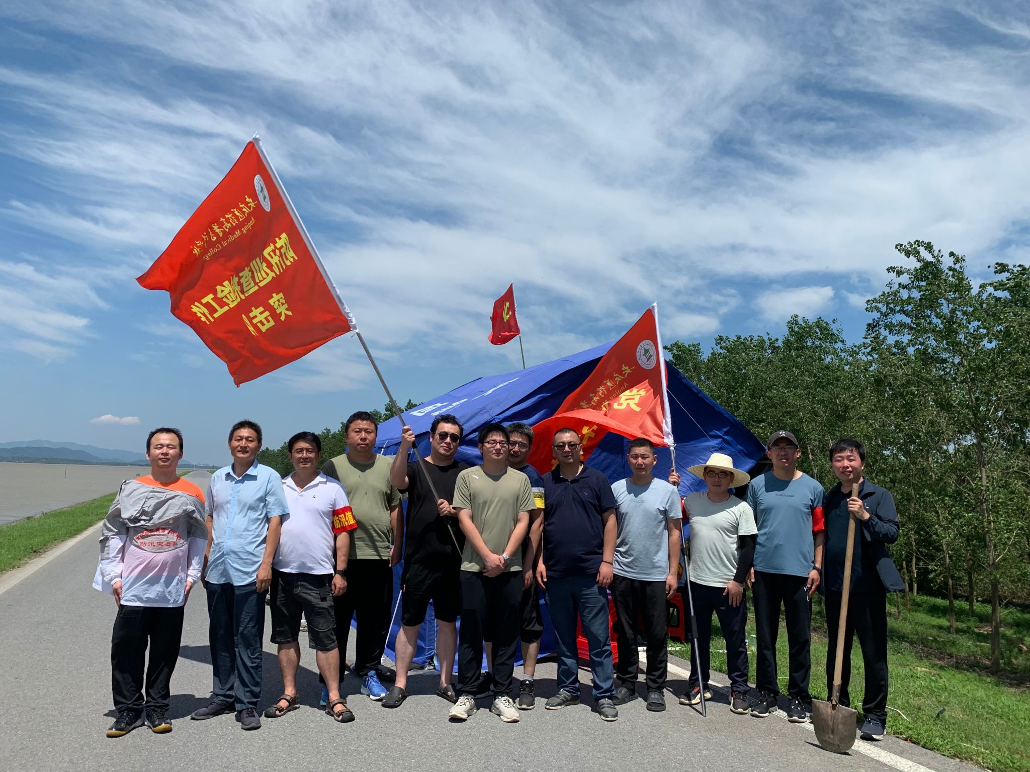 7月2日上午,市委组织部、市直机关工委发出《关于抽调市直机关党员、干部参与防汛巡查抢险工作的紧急通知》,校党委第一时间紧急部署,25名党员干部职工响应号召,1小时内迅速组建了防汛巡查抢险工作突击队,赶赴同马大堤皖河农场防守段,开展防汛值守工作。