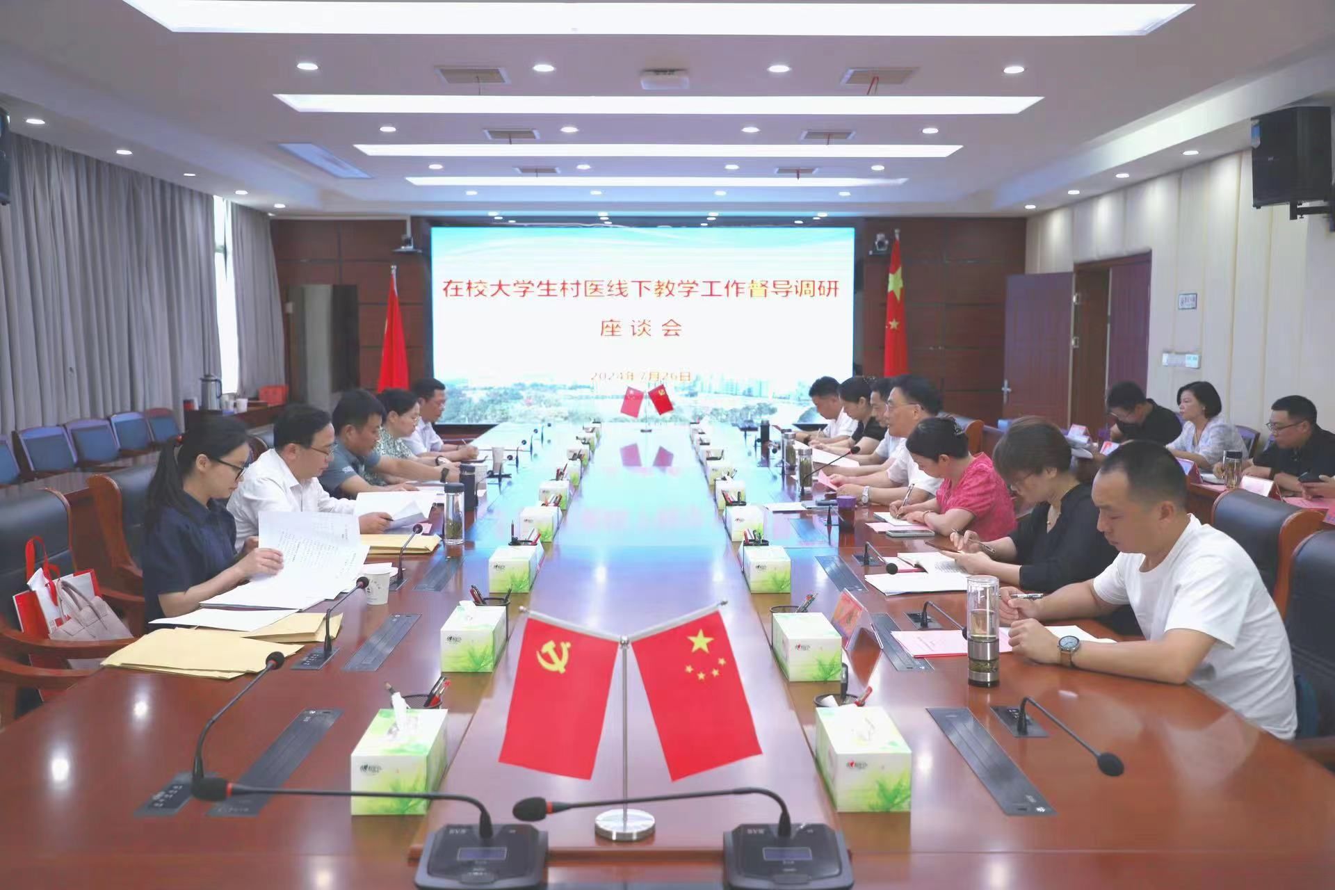 7月26日,省卫生健康委科技教育处三级调研员杨昱一行来我校,就村医暑期教学工作进行调研。安徽医学高等专科学校党委委员、教务处处长朱霖,亳州职业技术学院教务处处长王甫成,省卫健委、市卫健委有关同志陪同调研。校党委副书记、校长朱庆丰,党委委员陈琪、刘毅等校领导携校村医学历提升工作专班人员参加调研组座谈。
