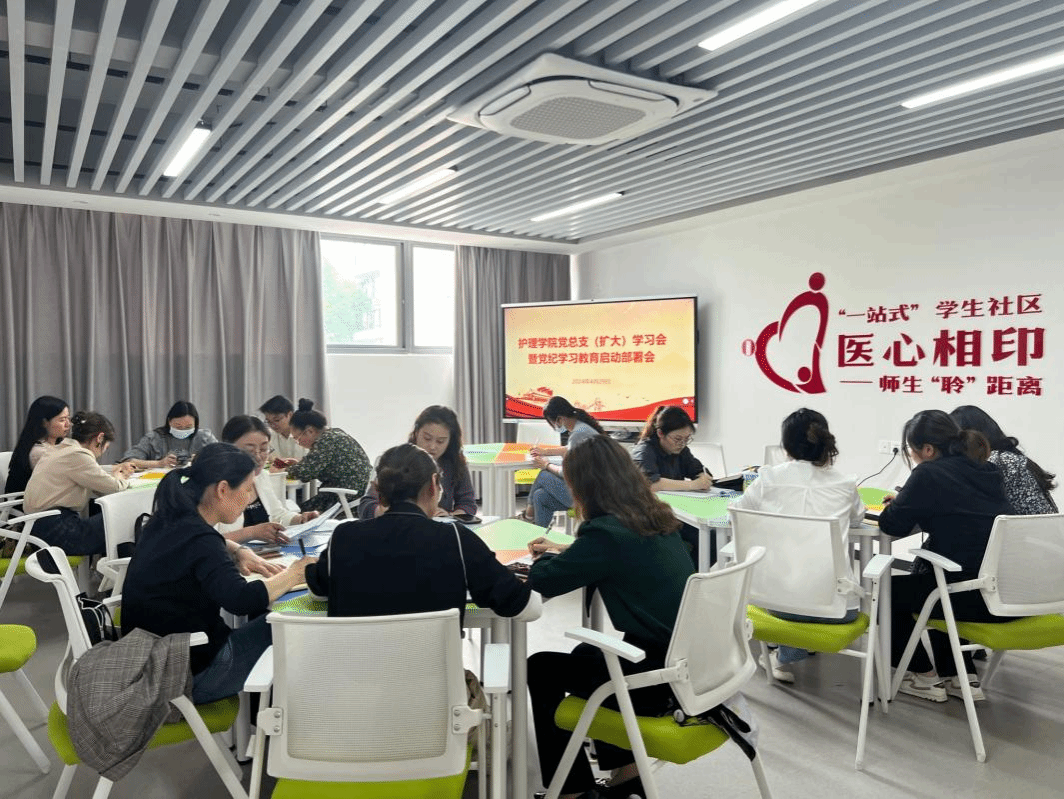 护理学院党总支把党纪学习教育作为重要政治任务,精心组织实施,丰富学习形式,加强督促落实,坚持不懈在内化于心、外化于行上下功夫,促进护理教育事业高质量发展。