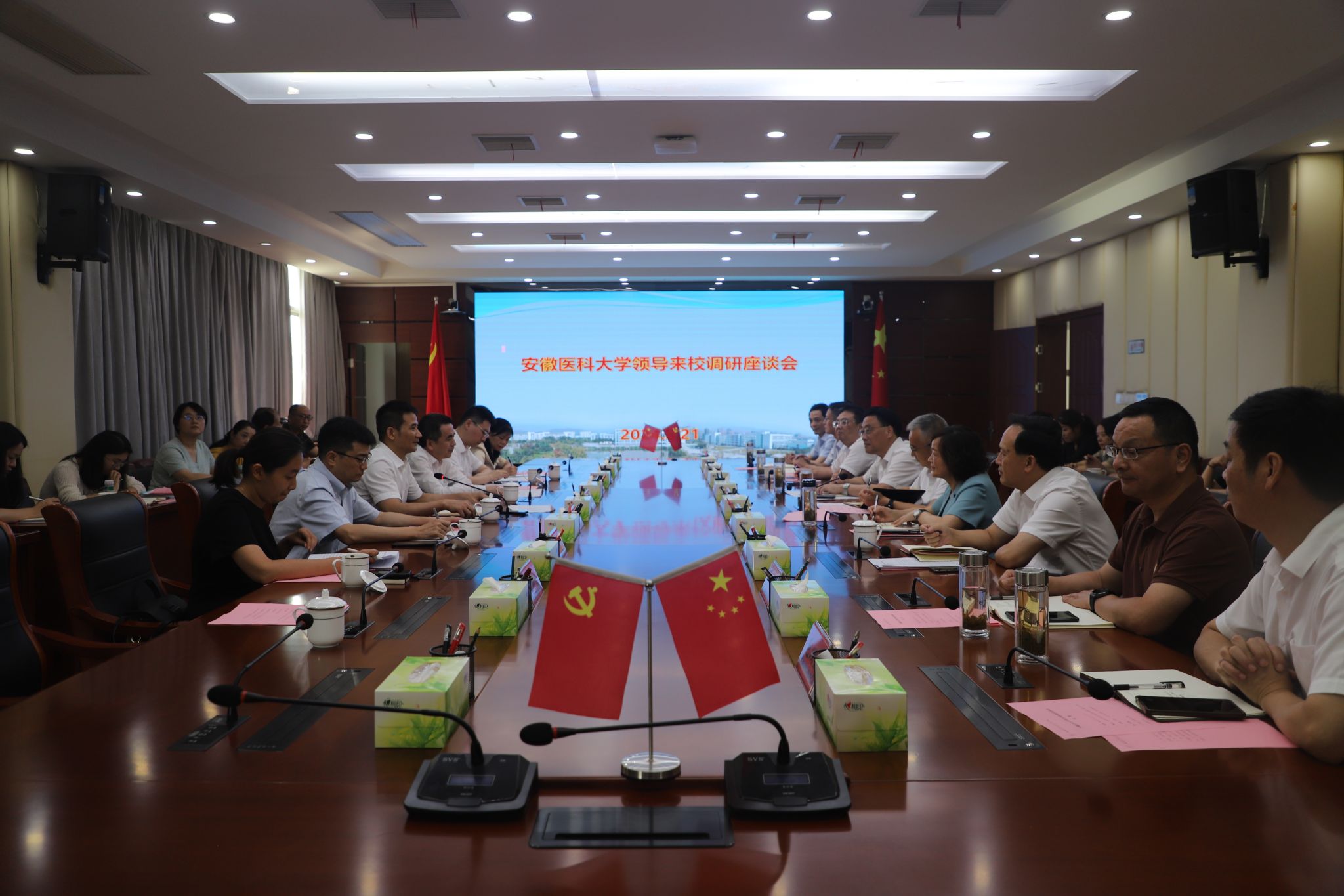 8月21日,安徽医科大学党委书记王琦、党委常委、副校长吕雄文一行来我校调研交流。安庆市委常委、组织部部长,市人大常委会党组成员、副主任叶林霞陪同调研。 校党委副书记、校长朱庆丰率校党委班子成员接待了王琦一行。