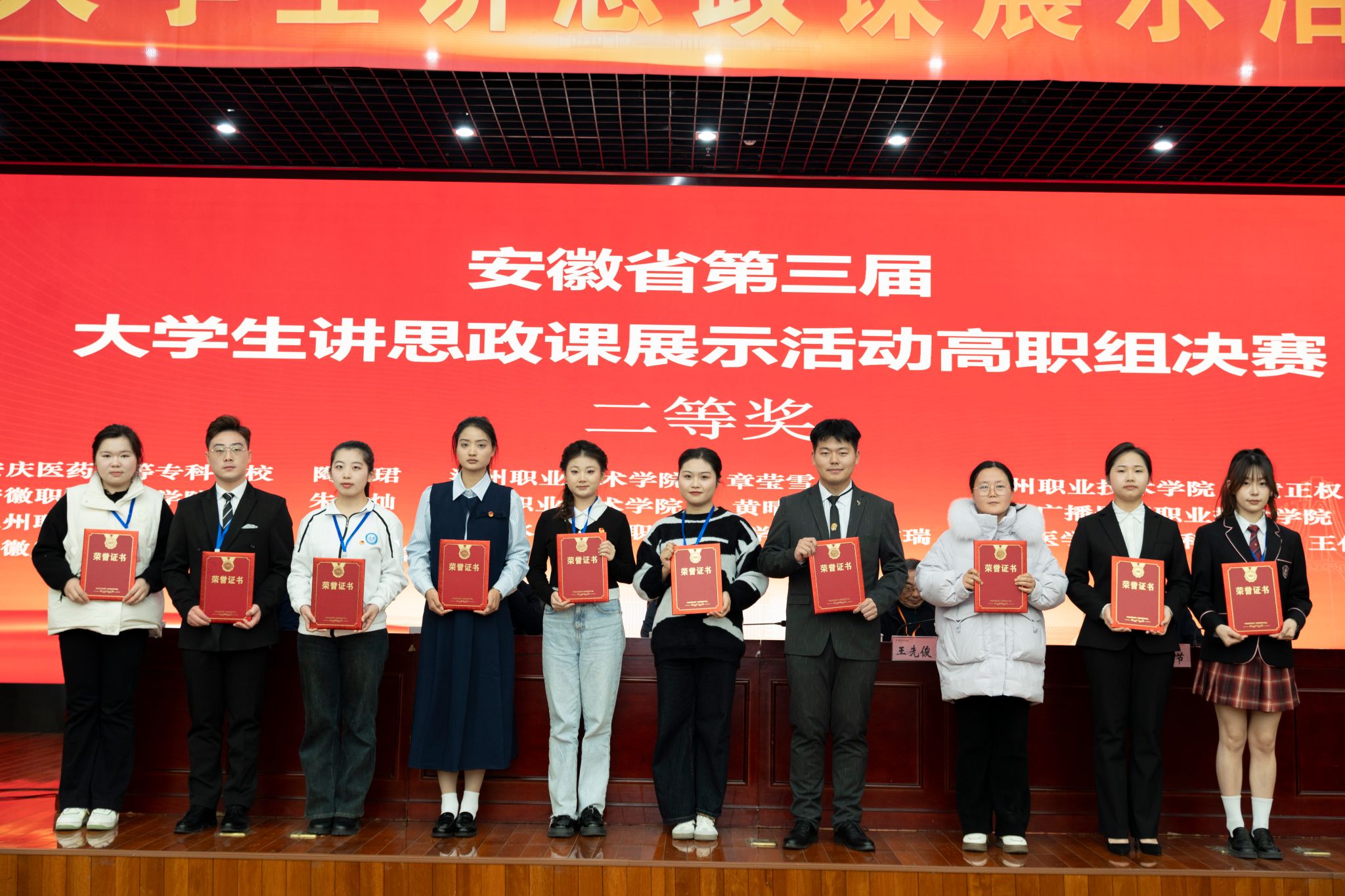 2024年12月27日,由中共安徽省委教育工委主办的安徽省第三届大学生讲思政课展示活动高职组决赛在合肥圆满落幕。经过激烈角逐,我校学子夺得决赛二等奖。
