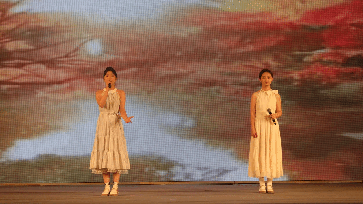 紧接着,宜韵艺术团带来的朗诵《致橡树》,宛如一股潺潺清泉,两位同学用饱含深情的语调,将诗歌中的情感细腻呈现,让大家沉浸在文学的优雅世界里。