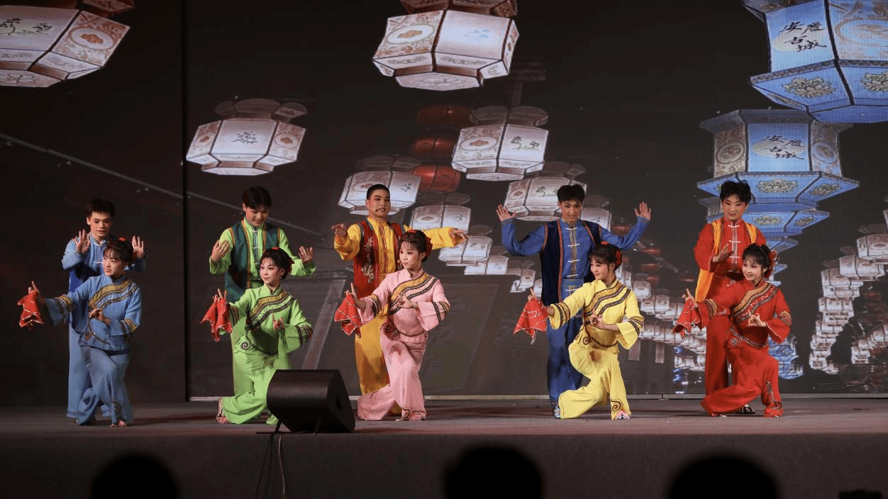 为加强学校间的文化交流,晚会特别邀请安徽黄梅戏艺术职业学院带来黄梅戏表演《闹花灯》,舞台上,同学们以独特的唱腔和表演形式,让传统戏曲艺术在校园里绽放光彩。