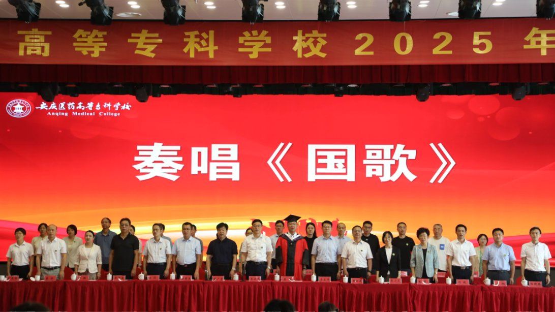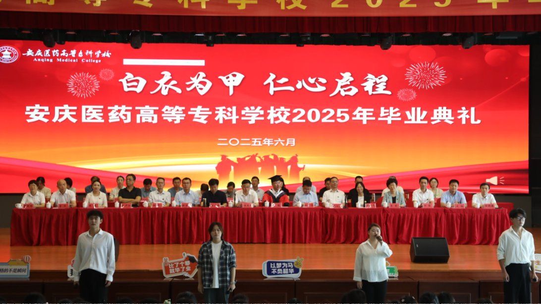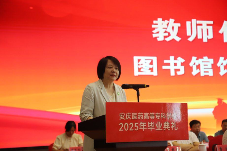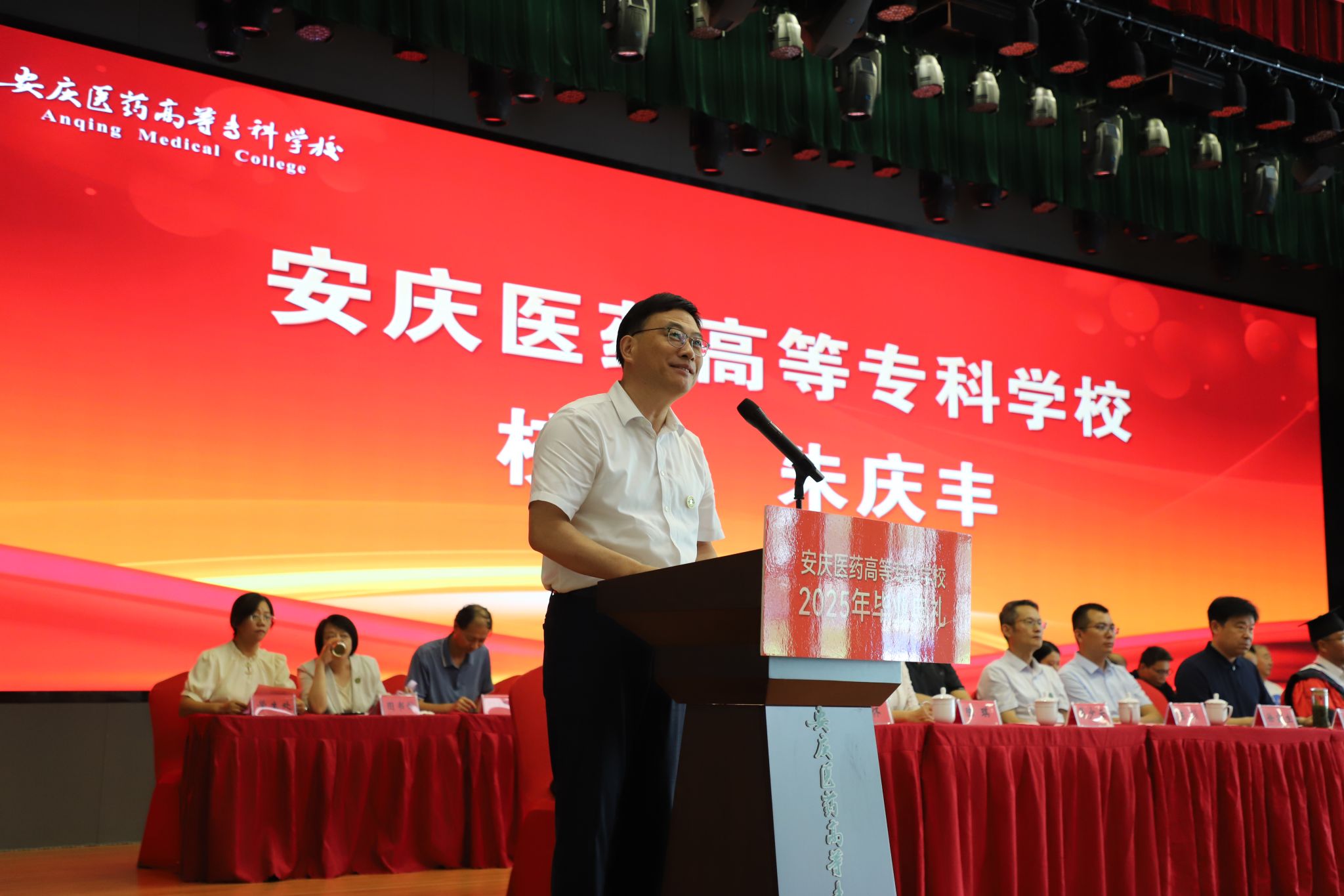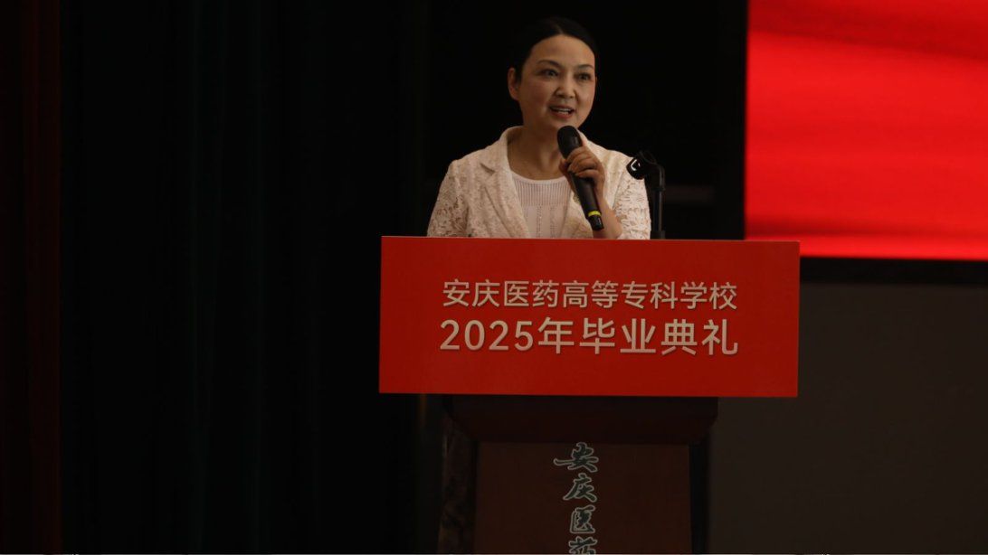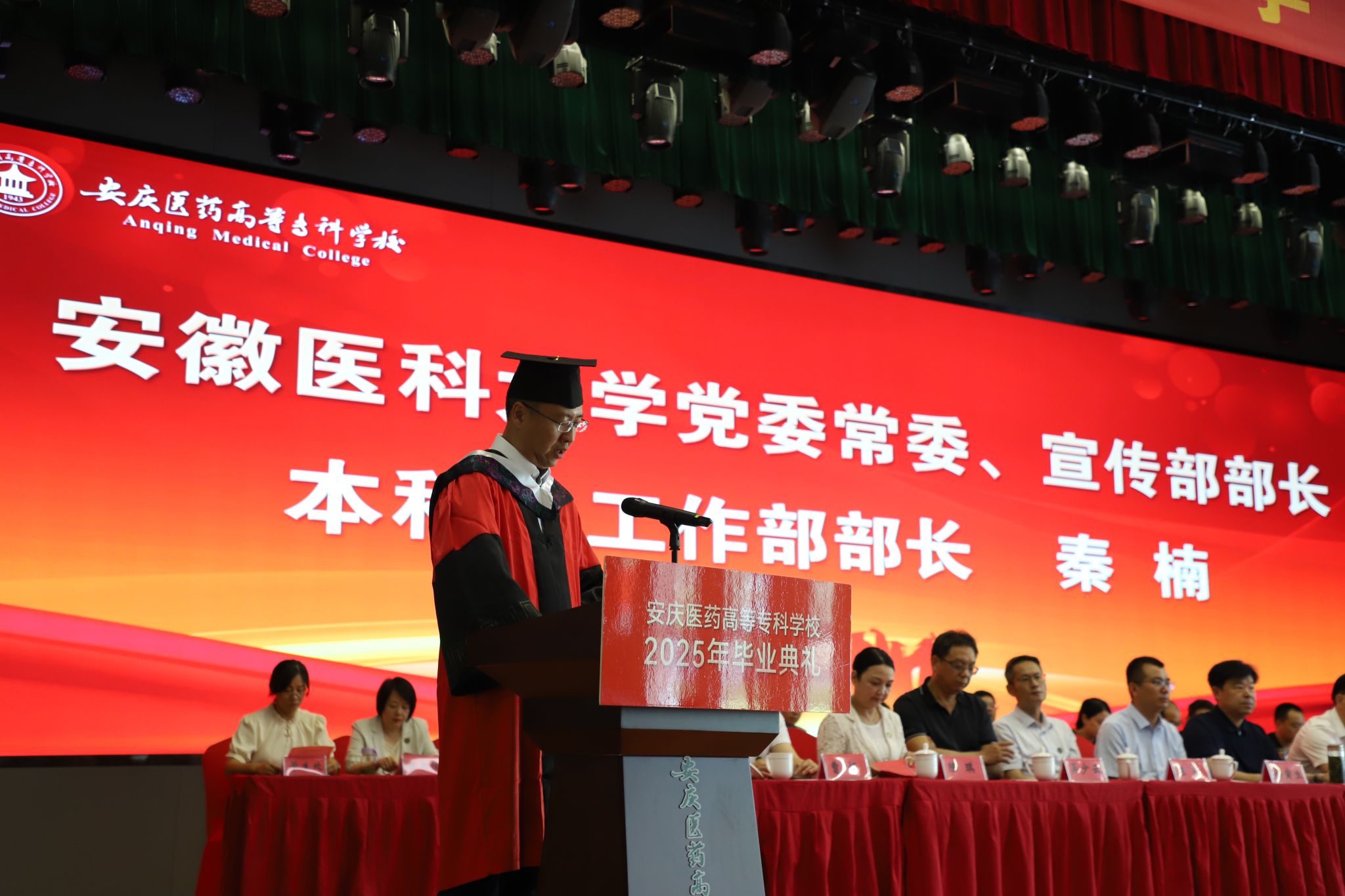 校党委委员、党政办主任陈琪宣读了《安庆医药高等专科学校2025届专科毕业生毕业的决定》和《2025年安徽省和校级优秀毕业生的决定》。