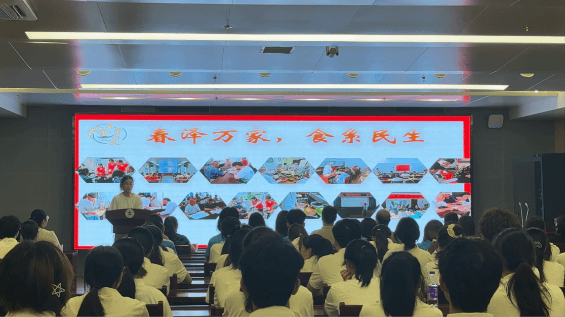 在经验分享环节,春芽志愿服务队成员赵艳同学和医学院团总支书记孙宁宁老师分别代表优秀实践团队和优秀指导老师上台发言。赵艳以亲身经历为切入点,生动讲述了团队成员心系农村老年人膳食健康,连续多年深入偏远乡村、社区开展配餐服务的难忘故事。孙宁宁老师则从活动指导的角度,分享了如何引导学生将课堂所学的医学知识与社会实践紧密结合。