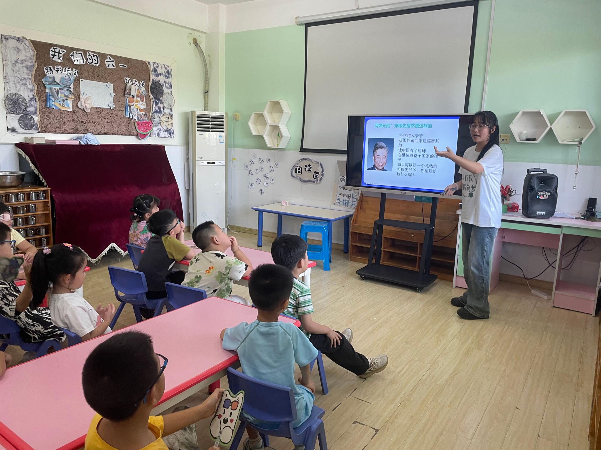 朱庆丰一行走进教室,观摩实践团成员的暑期趣味课堂。实践团结合专业特色与红色教育,通过生动宣讲“两弹一星”精神,以科学家爱国奋斗故事点燃孩子们的理想火种;发挥医学专长,为幼儿园小朋友量身定制趣味生理健康课程,帮助树立科学健康意识;针对暑期安全防护,开展防溺水知识宣讲,通过情景演示、互动问答和学唱防溺水主题歌曲《“泳”气大爆发》,寓教于乐提升幼儿自救能力。今年暑期,团队先后前往潜山县、怀宁县、宜秀区等地开展活动10余场,并成功入选2025年全国大学生“两弹一星”精神志愿宣讲团。