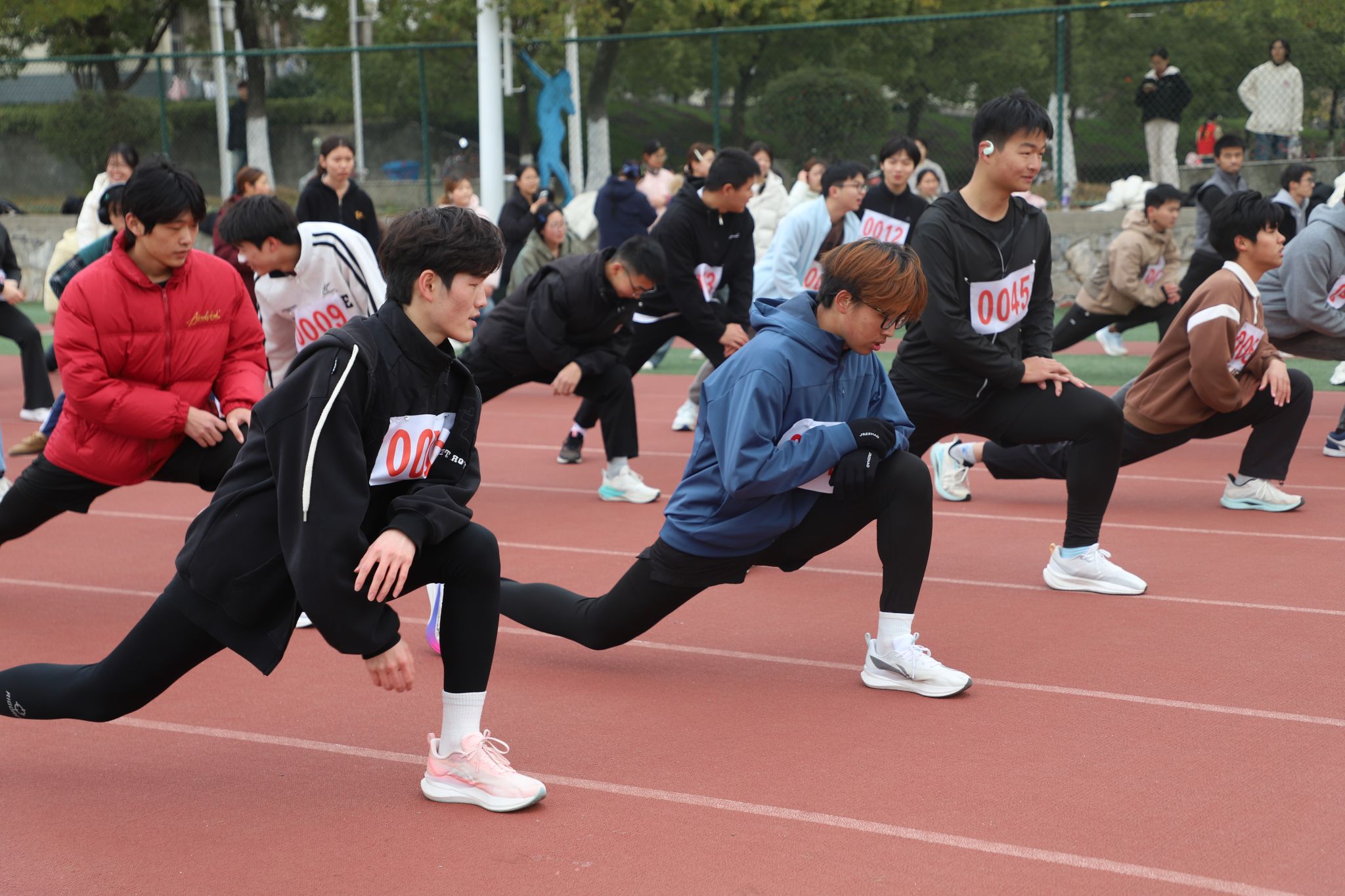 赛场上,师生选手们不畏严寒,斗志昂扬,你追我赶;赛道边,加油声、助威声此起彼伏,展现出浓厚的集体凝聚力与校园活力。为确保赛事安全顺畅,主办方进行了周密安排:选手均签署安全承诺书并统一佩戴号码布;赛道沿途设有引导标识与志愿者服务点;医疗保障点全程值守;校园环道实施临时交通管制,得到师生们的广泛配合。各班级辅导员也积极做好后勤服务,引导选手赛后科学放松。