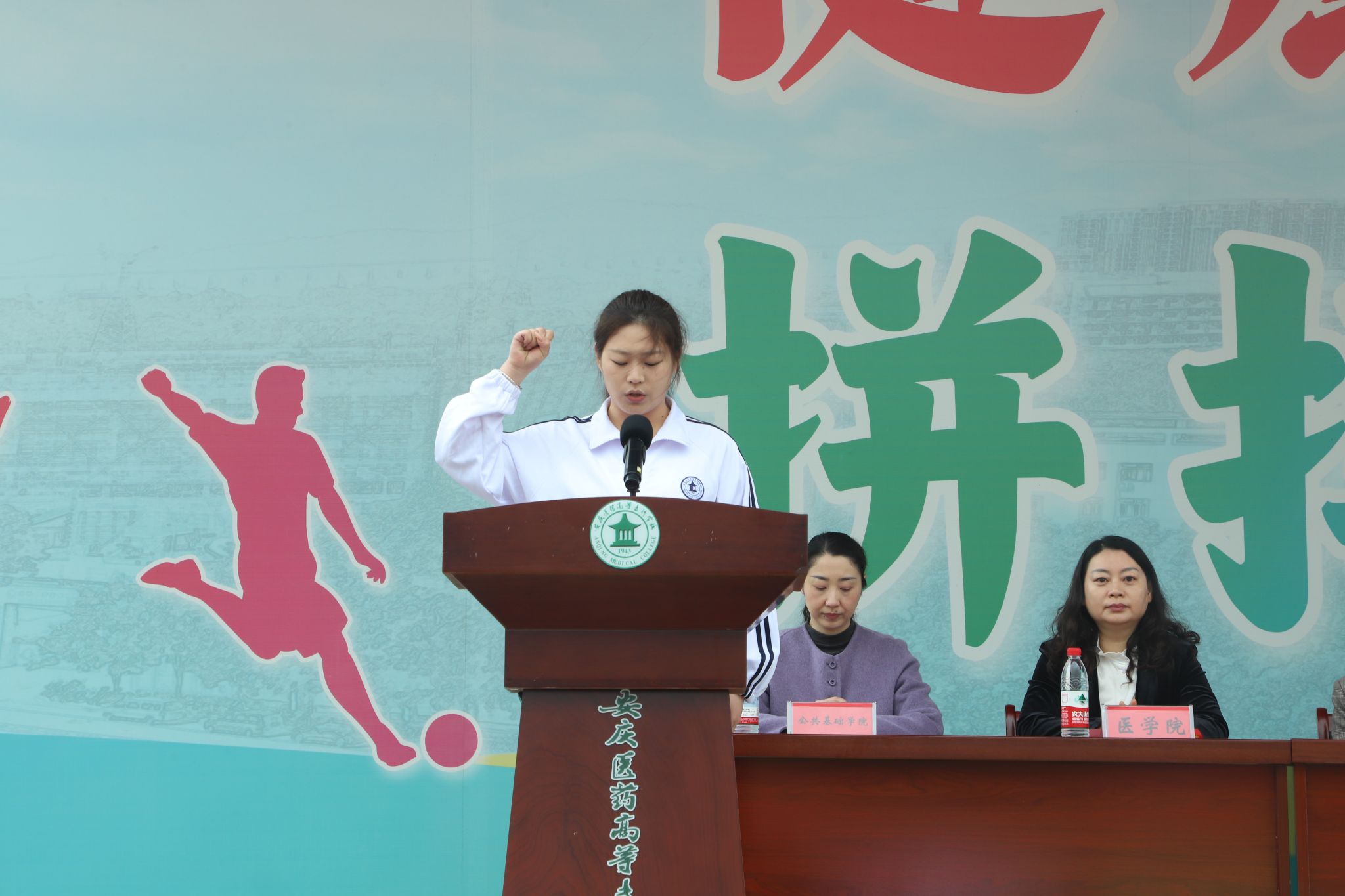 药学院运动员代表王倩、裁判员代表杨小四先后庄严宣誓,承诺恪守体育道德、公平竞赛、公正执裁,共同维护良好赛风赛纪。