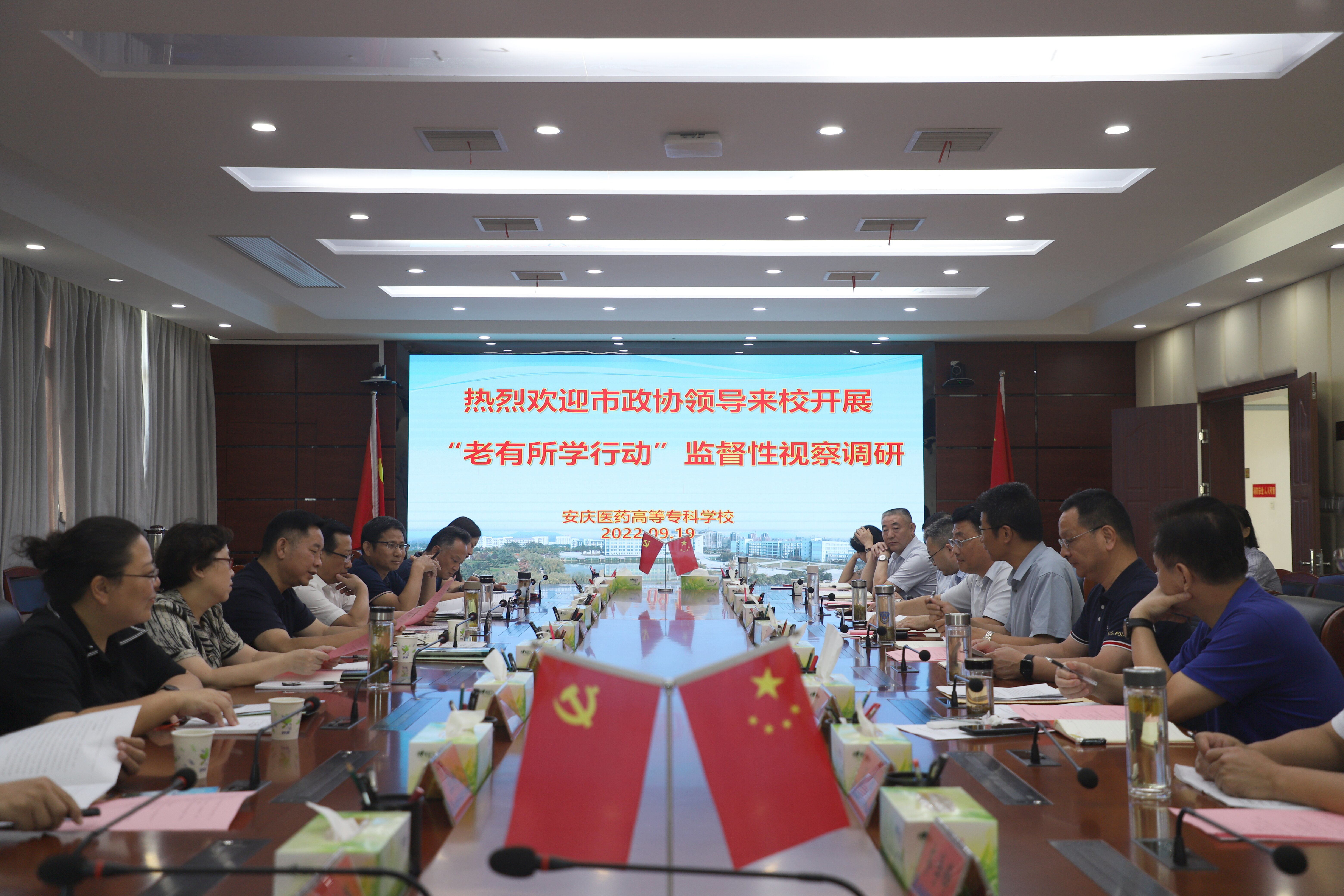 调研组首先实地视察了市老年大学安庆医药高等专科学校分校暨安庆医药高等专科学校老年大学教室、办公室等场所设施,随后召开了“老有所学行动”座谈交流会。