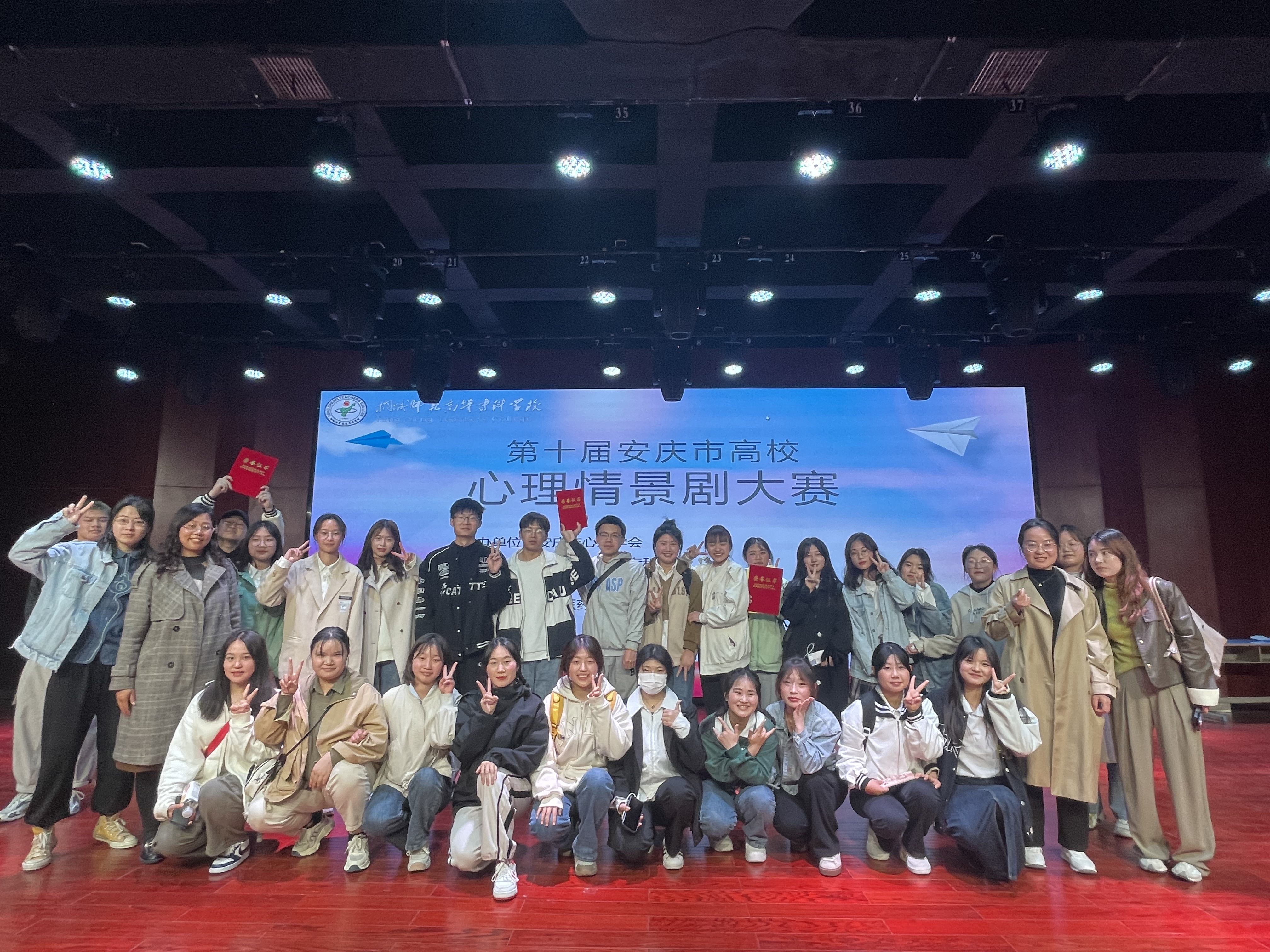 3月27日下午,安庆市第十届高校心理情景剧大赛在桐城师范高等专科学校圆满落下帷幕。我校选送的心理情景剧《反哺》、《独一无二的你》双双荣获二等奖。我校沈荣漪老师获得了“优秀指导老师”称号。