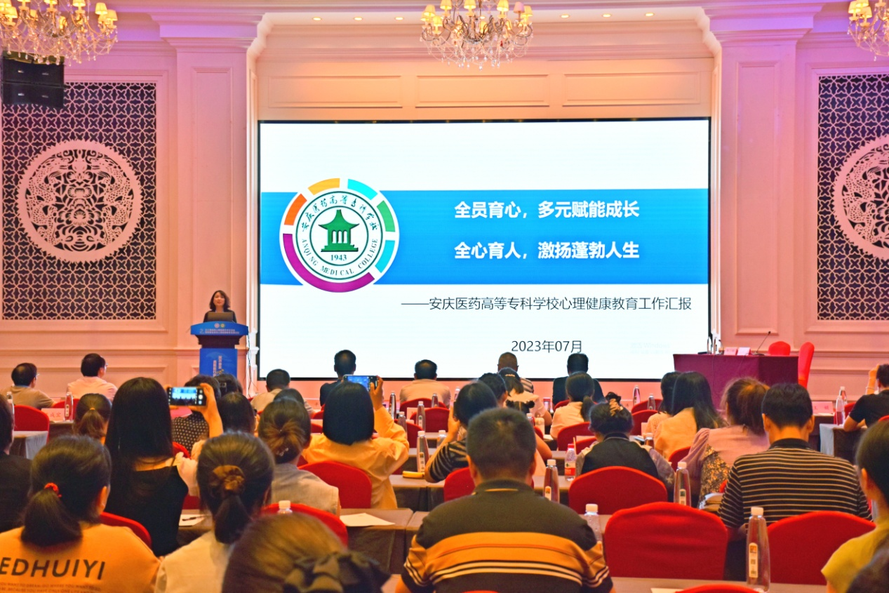 会上,中国科学技术大学、安徽建筑大学、合肥幼儿师范高等专科学校、安庆医药高等专科学校等四所高校就心理健康教育与管理工作作经验交流。我校党委委员陈琪代表学校以“全员育心、多元赋能成长 全心育人,激扬蓬勃人生”为题进行现场交流汇报,目前我校的心理健康工作形成了以心理健康课程为中心,心理提升计划为主线,心理咨询工作为重点,医校联合服务为平台,班级心理委员为纽带,心理拓展活动为特色的工作新格局,进一步守护学生心理健康。