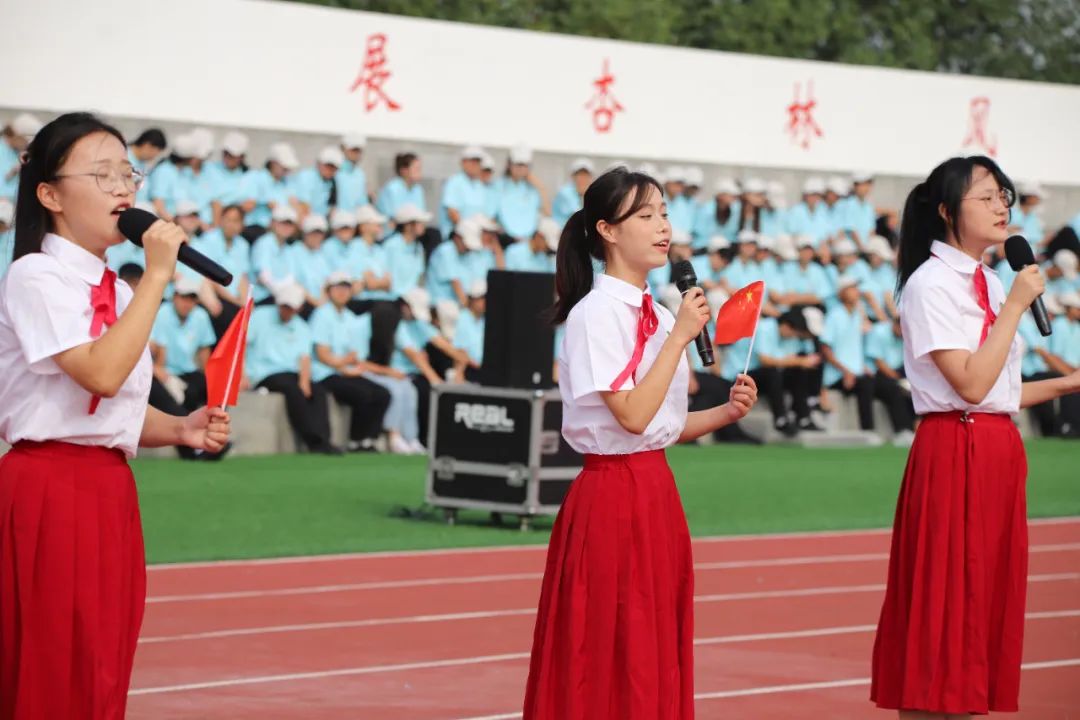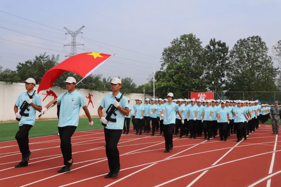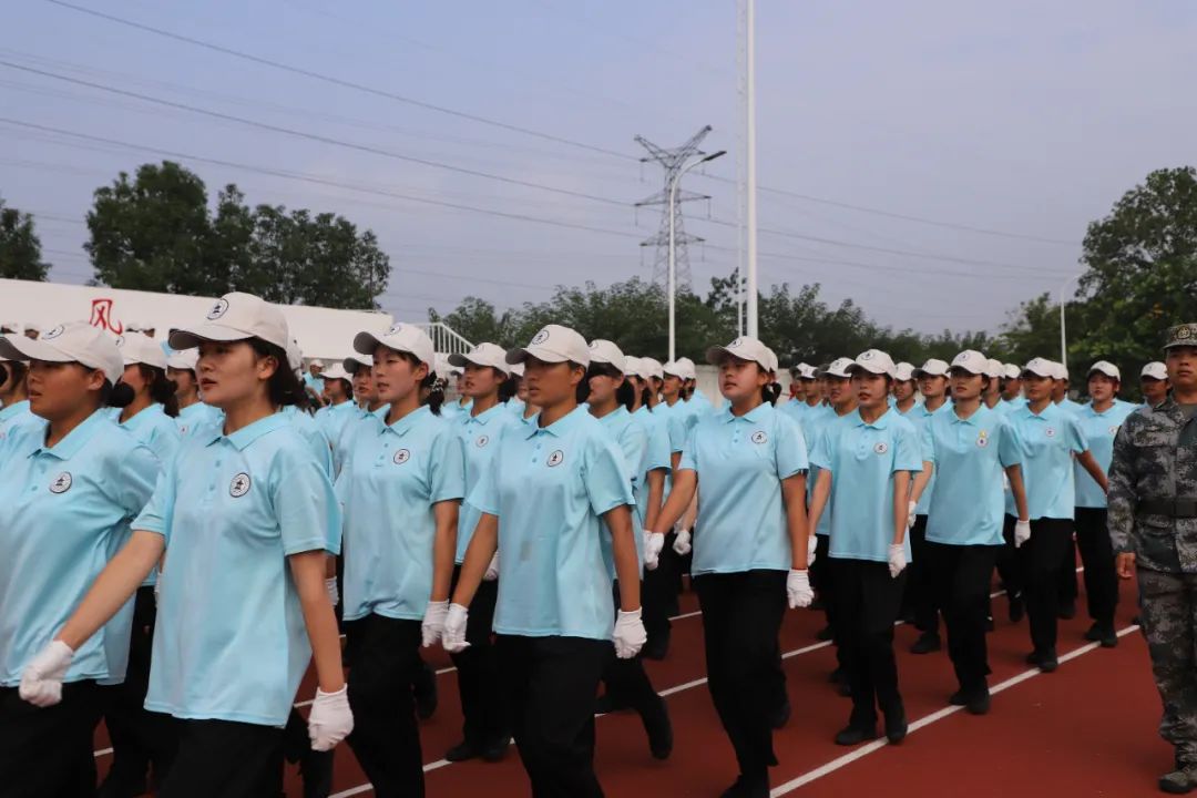 伴随着雄壮的国歌声,五星红旗缓缓升起,叶林霞宣布2023级新生军训会操表演开始。