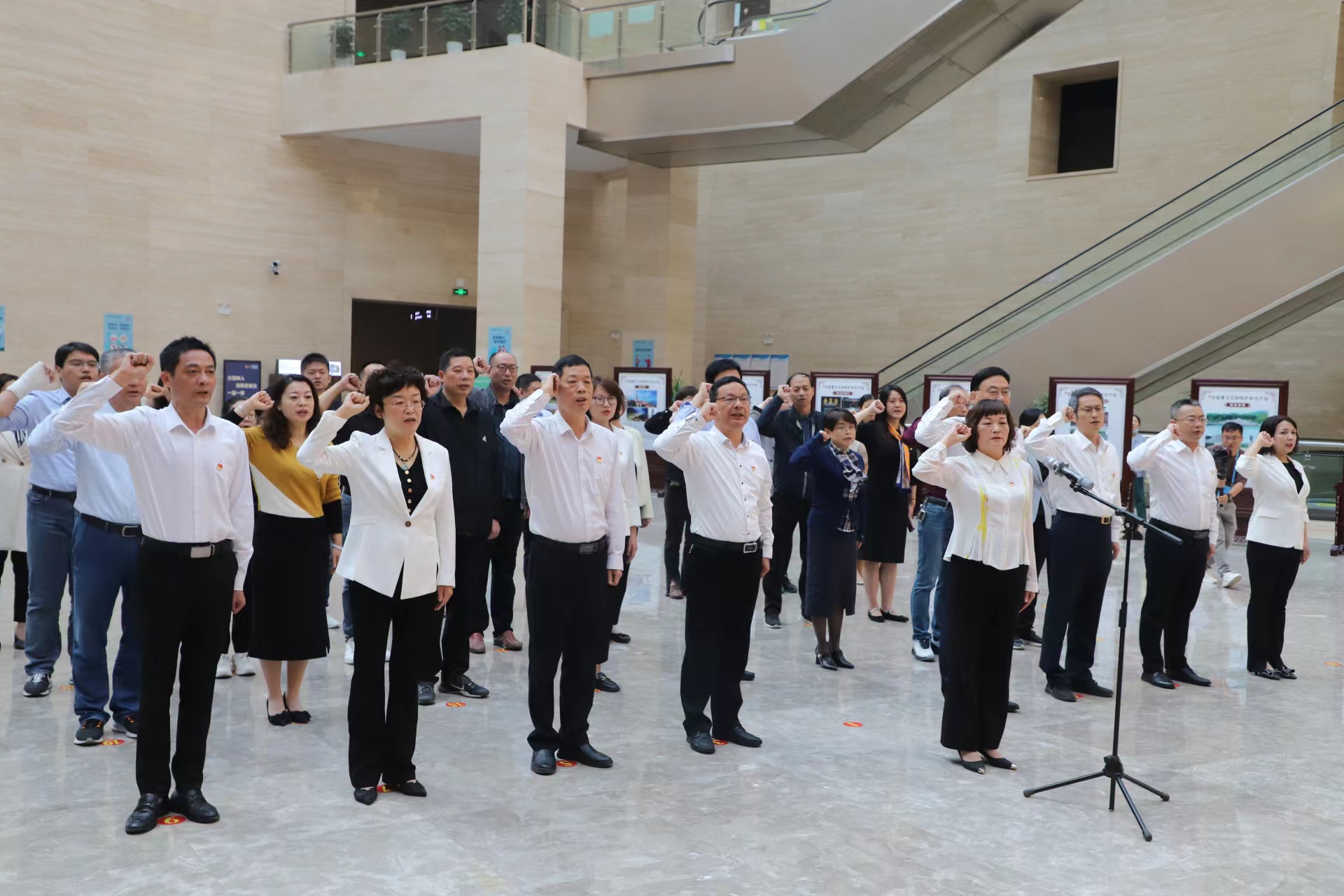 上午9时,在安庆市博物馆中央大厅,面向鲜红的党旗,叶林霞带领全体党员干部重温入党誓词,铮铮誓言下,校党委的凝聚力和战斗力得到了进一步加强,党员干部为党育人,为国育才的责任感、使命感得到了进一步提升,为党的事业奋斗终身的决心更加坚定。