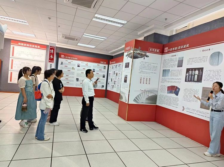 走进周氏家风馆,全体师生在讲解员的带领下,通过展览、陈列、影像、解说等载体,深入学习贯彻党的二十大精神和习近平总书记关于注重家庭家教家风建设的重要论述,认真了解了周氏家族数代才俊的杰出贡献和精神风貌,以廉洁家风涵养清风正气,通过展板、图片、视频、沉浸空间等多种形式,感悟强烈的思想洗礼和心灵震撼,敲响了振聋发聩的警钟。