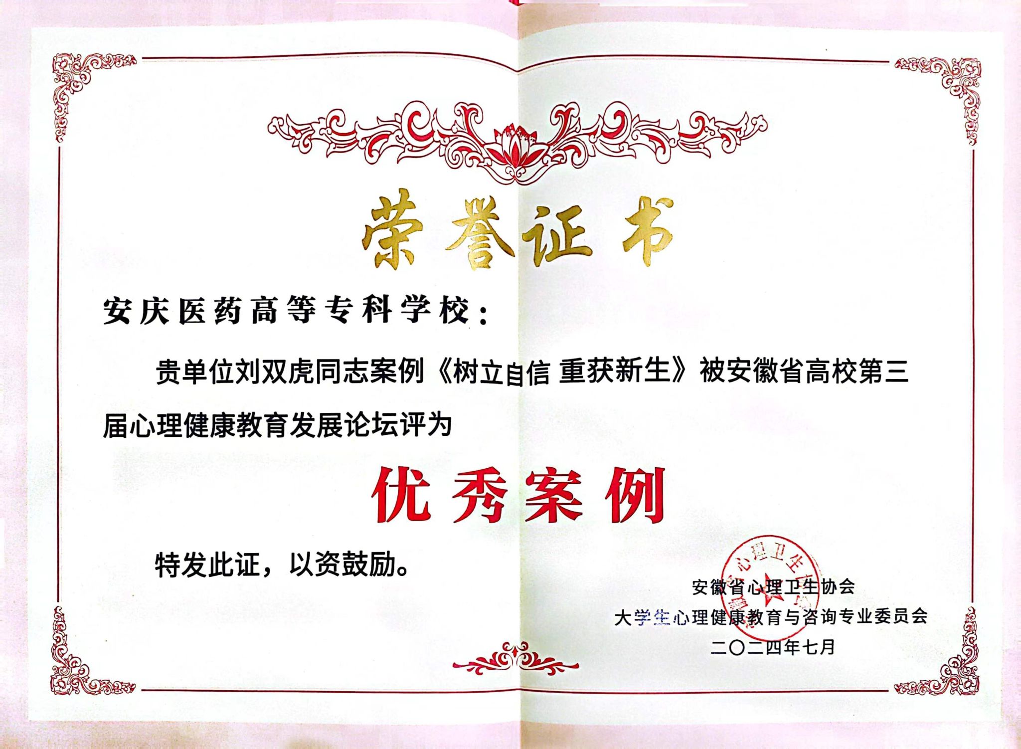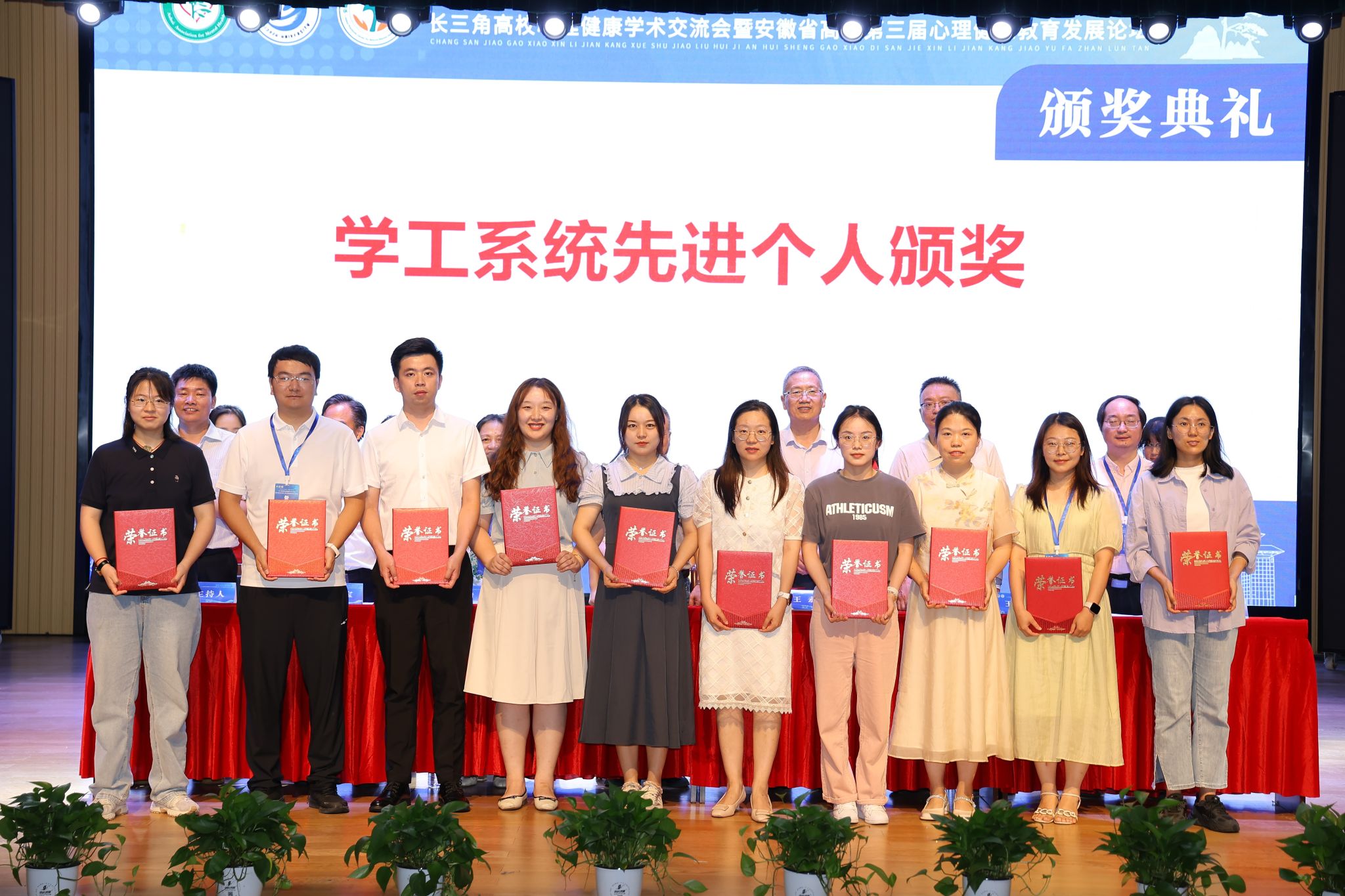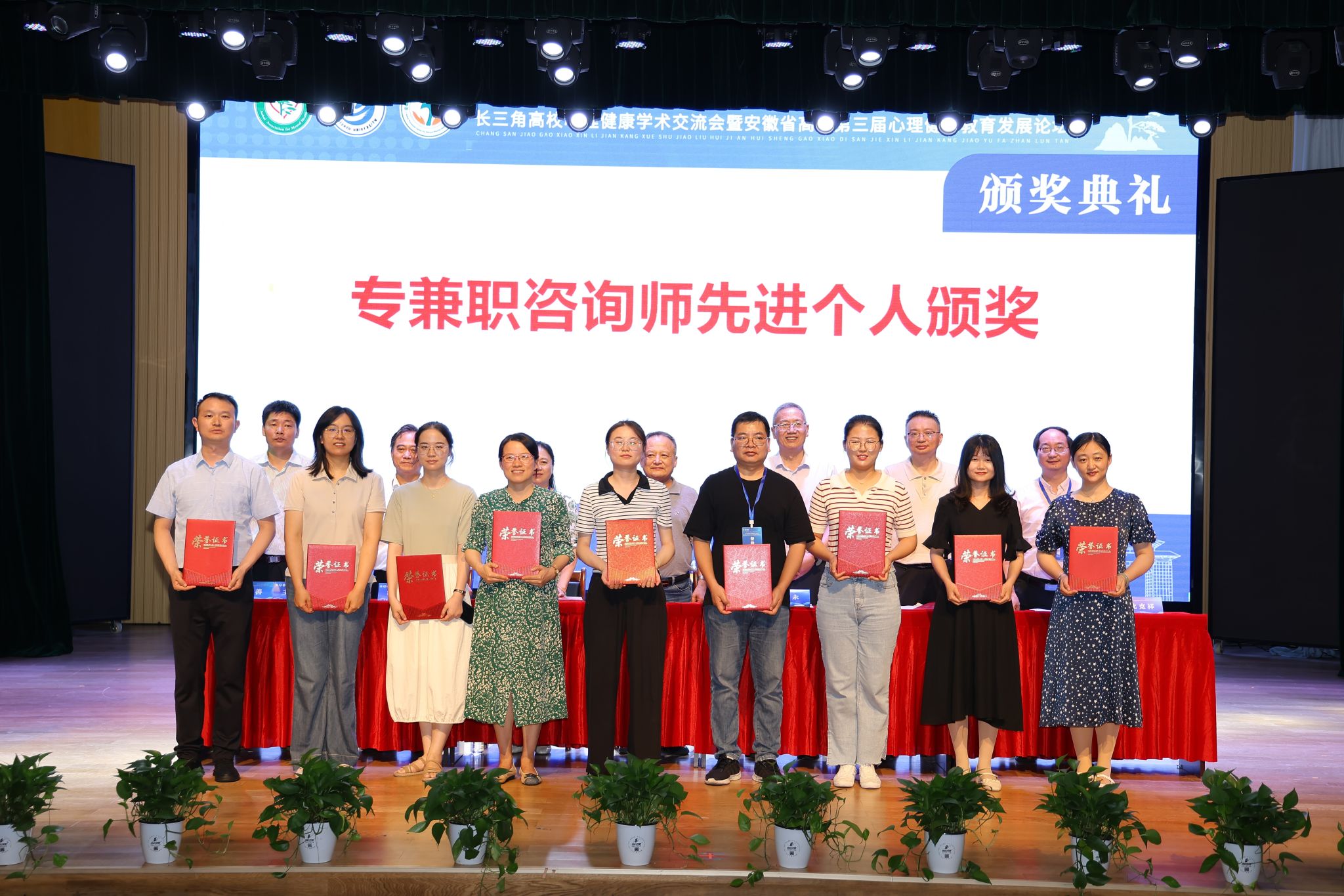会议评选和表彰了“双十佳”高校、优秀案例、先进个人等,经过自主申报、专家评审,我校刘双虎老师《树立自信 重获新生》案例荣获“优秀案例”;沈荣漪老师荣获学工系统“先进个人”;江澜老师荣获专兼职咨询师“先进个人”荣誉称号。