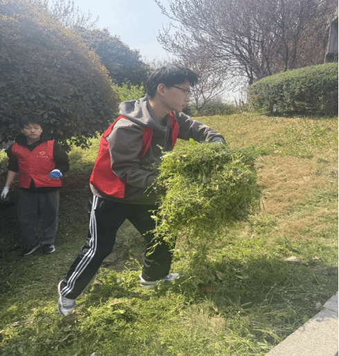 雷锋月期间,各班级广泛组织志愿者在本班级环境卫生区开展卫生清扫志愿活动。3月20日下午,校青年志愿者协会组织志愿者齐聚校园百花亭周边,开展义务除草,在志愿者数小时的努力下,原本杂草丛生的草坪焕然一新,为春日校园增添清新底色。