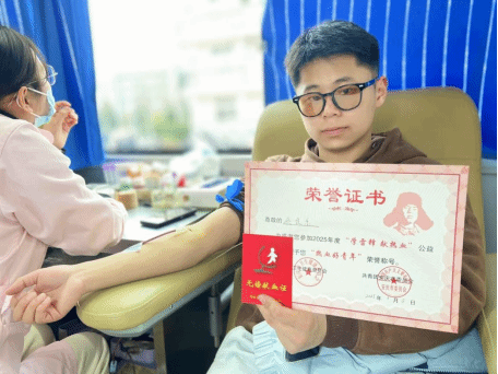 无偿献血,点亮青春。当天中午,学校还联合安庆市红十字中心血站在食堂门口广场开展无偿献血宣传科普活动,吸引在校学生积极参与。其中参加献血的姚佳乐同学已是第三次参加献血,献血量累计达1100毫升。