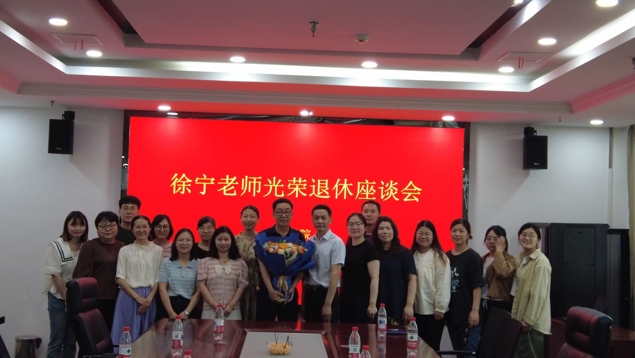 岁月如歌,情怀永驻。2025年5月15日中午在药学院六楼会议室举行徐宁老师光荣退休座谈会。校党委委员、药学院书记、院长刘毅,药学院党政人员,教研室主任及相关教师代表参加,副院长杨莹主持座谈会。