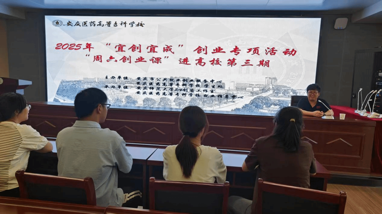 2025年6月7日,“宜创宜成・周六创业课”进高校活动(第三站)走进安庆医药高等专科学校,为我校学子带来了一场兼具专业性与通俗性的AI知识盛宴。此次讲座中学生处、学生等50余人参与。