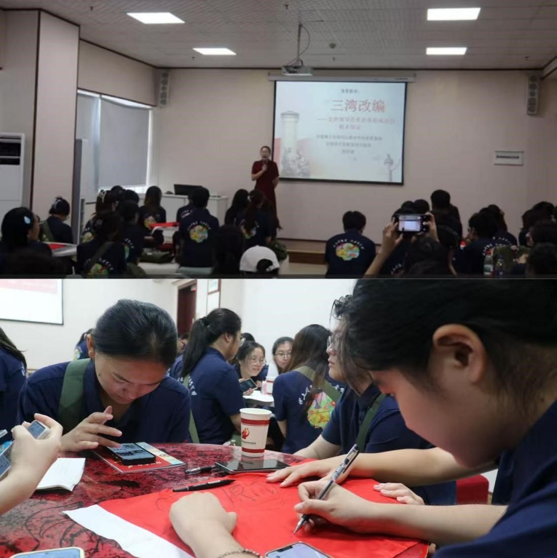 红歌教学传唱:在“红歌教学”活动中,《没有共产党就没有新中国》《红星闪闪》《红米饭,南瓜汤》等经典红歌响彻礼堂,团队成员们跟着老师学唱红歌、理解歌词背后的历史故事,以嘹亮歌声传递爱国情怀,在旋律中凝聚“奋进新征程”的精神力量。