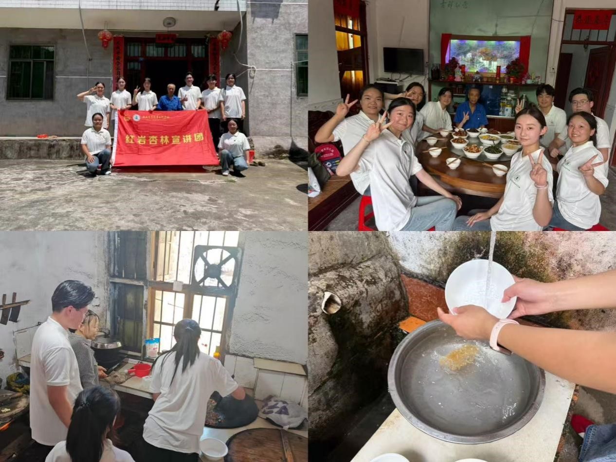 制作红军饭:走进当地老乡家中,团队成员们亲手淘洗红米、蒸煮南瓜,品尝“红米饭、南瓜汤,干稻草来软又黄”的红军生活,在烟火气中体会革命先辈“苦中作乐、乐观向上”的精神品质,加深理解“勤俭节约、艰苦奋斗”的时代意义。