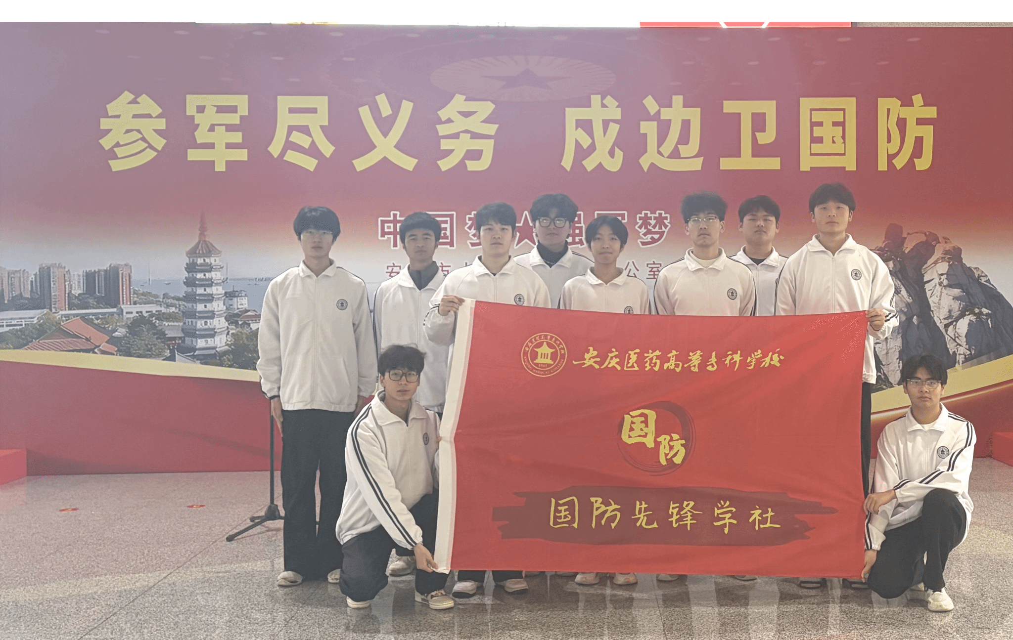 3月16日,安庆医药高等专科学校“国防先锋学社”积极响应号召,组织学生志愿者参与安庆市2026年上半年新兵入伍欢送大会的现场志愿服务。