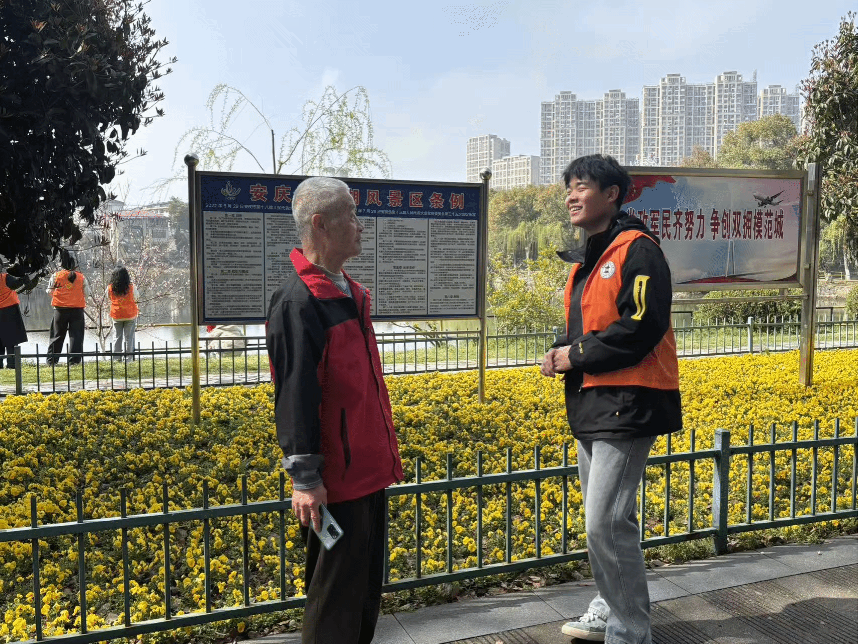 发挥专业优势,让雷锋精神在服务社会中彰显价值。3月21日,学院学子走进安庆市菱湖公园,开展“菱湖护绿,科普同行”生态科普志愿活动。同学们分为科普宣传、生态守护、健康咨询、后勤保障四组,分工协作:科普宣传组向市民讲解生态保护知识;生态守护组清理垃圾并悬挂绿植保护标识;健康咨询组依托护理专业优势,为市民提供户外应急健康咨询;后勤保障组统筹物资与现场秩序。志愿者们用专业知识服务市民,用点滴行动守护绿水青山,在实践中锤炼了专业技能与责任担当,展现了新时代青年学子服务社会、奉献青春的良好风貌,为生态文明建设注入了青春力量。
