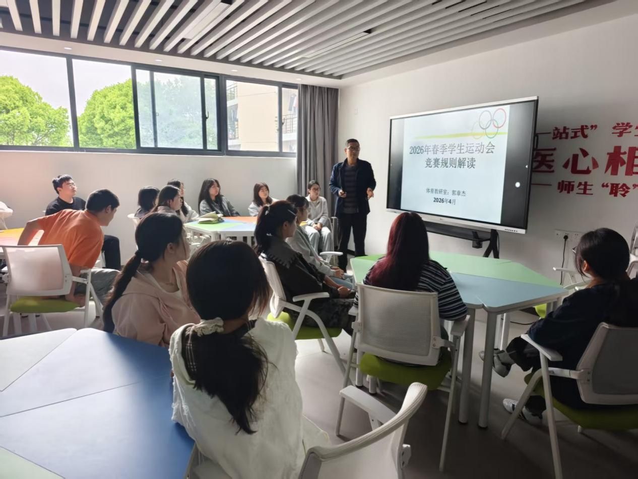 为深入落实《安庆医药高等专科学校大学生体质提升专项行动实施方案》,扎实推进体育健康资源融入“一站式”学生社区建设,牢固树立“健康第一”的教育理念,切实打通体育育人“最后一公里”,4月15日,公共基础学院体育党支部走进学生社区,面向学生代表开展2026年学生春季运动会竞赛规则专题讲解,并赴田径场跳高场地进行实地教学与规则指导,以专业服务贴近学生,以党建引领赋能体育锻炼。