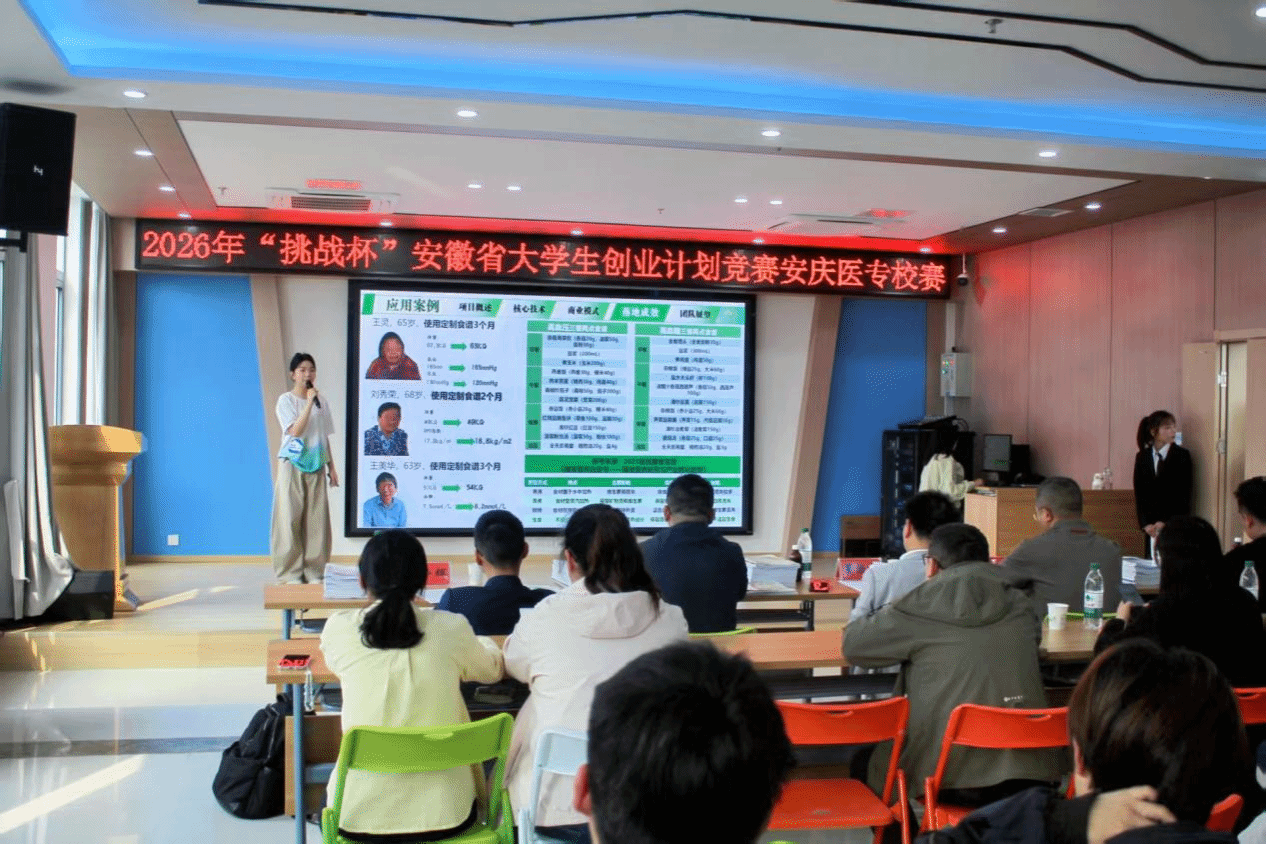 4月18日,第十二届“挑战杯”安徽省大学生创业计划大赛安庆医药高等专科学校校级选拔赛在学校双创中心圆满落幕。校党委委员、宣传部部长陈慧亲临现场指导工作,并与校外评审专家深入交流。各学院党总支副书记、团总支负责人及参赛师生代表百余人现场观赛。
