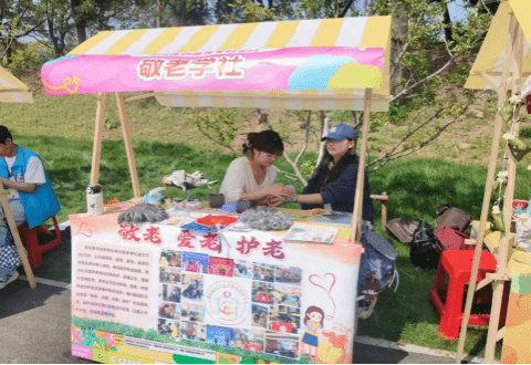 在敬老学社摊位上。同学们将老年人常见疾病主题绘画活动中的优秀作品进行了现场展示,不少同学驻足欣赏,交流着对敬老文化的理解。并在活动现场,为同学们提供免费血压测量、血糖检测等健康服务。同时,社团成员也向其他高校的社团代表分享了敬老主题活动的策划经验,探讨如何在校园中更好地弘扬孝亲敬老的传统美德,让温情与善意在交流中传递。