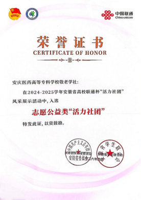 活动现场举行的2024—2025学年安徽省“活力社团”颁奖仪式上,我校敬老学社与国防先锋学社成员作为获奖代表上台领奖。