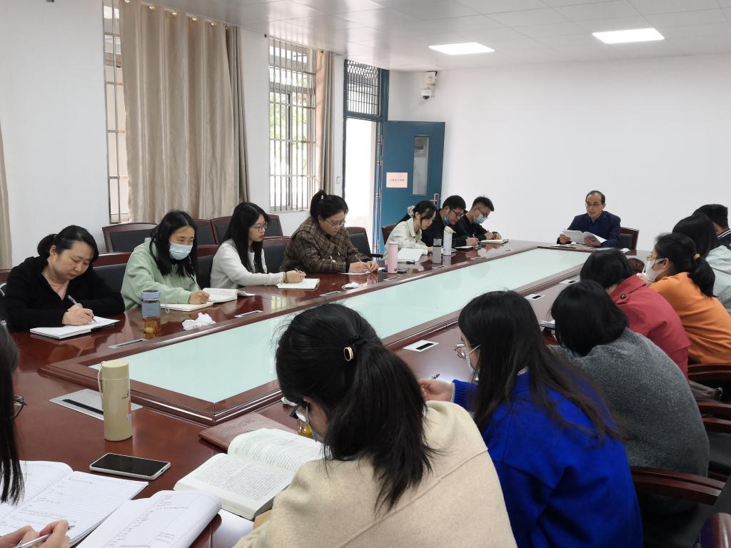 2022年4月14日中午,马克思主义学院直属党支部在1栋教学楼一楼大会议室召开了全体党员(扩大)会议。支部书记陆胜利主持会议,马克思主义学院全体党员教师参加。
