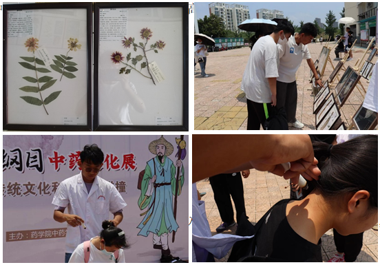 2022年5月26日,药学院在食堂门口举办了“一棵小草改变世界,一枚银针贯通中西,一缕药香跨越古今”为主题的中药文化节活动。