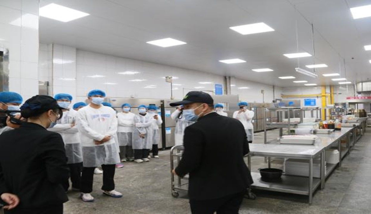 同学们近距离参观了食堂后厨,在工作人员讲解下,详细了解食品从采购、存储、加工、烹饪到送上餐桌等各环节规范操作流程。对后厨的规范化管理、干净整洁的环境表示赞赏。同时,同学还就剩饭菜的处理、餐饮具的洗消以及菜品销售价格等方面和食堂负责人进行了交流,并提出建议,食堂方面也积极采纳并表示将努力改进提高服务质量。