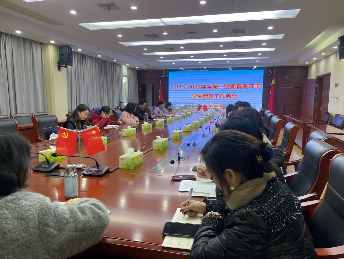 2月20日下午,为全面贯彻落实立德树人根本任务,进一步规划新学期工作目标和思路,聚焦学校高质量发展和人才培养目标,确保新学期各项学生工作安全、有序、高效进行,学生处在行政楼三楼大会议室组织召开2023-2024学年第二学期春季开学学生管理工作会议。党委委员陈琪出席会议并讲话,学生处、团委全体工作人员,各学院党总支书记、副书记、学生管理工作队伍人员参加会议。