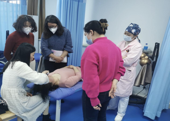 安庆市中医院潮丽娜老师向大家演示和讲解推拿的操作手法及注意事项,基础护理教研室许娟老师演示铜砭刮痧操作,并讲解注意事项。随后老师们就操作和教学过程中存在的问题进行了交流,对利用现代化教学手段提升教学效果等方面展开了热烈的讨论,最终对实训教学内容及形式达成了共识。