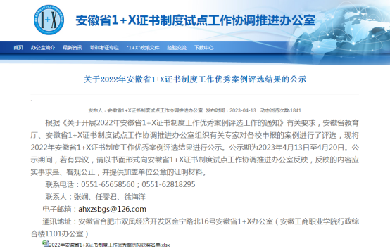 近日,安徽省1+X证书制度试点工作协调推进办公室发布《关于2022年安徽省1+X证书制度工作优秀案例评选结果的公示》,我校案例《借力“1+X”证书,助推护理高水平专业群建设》荣获一等奖!