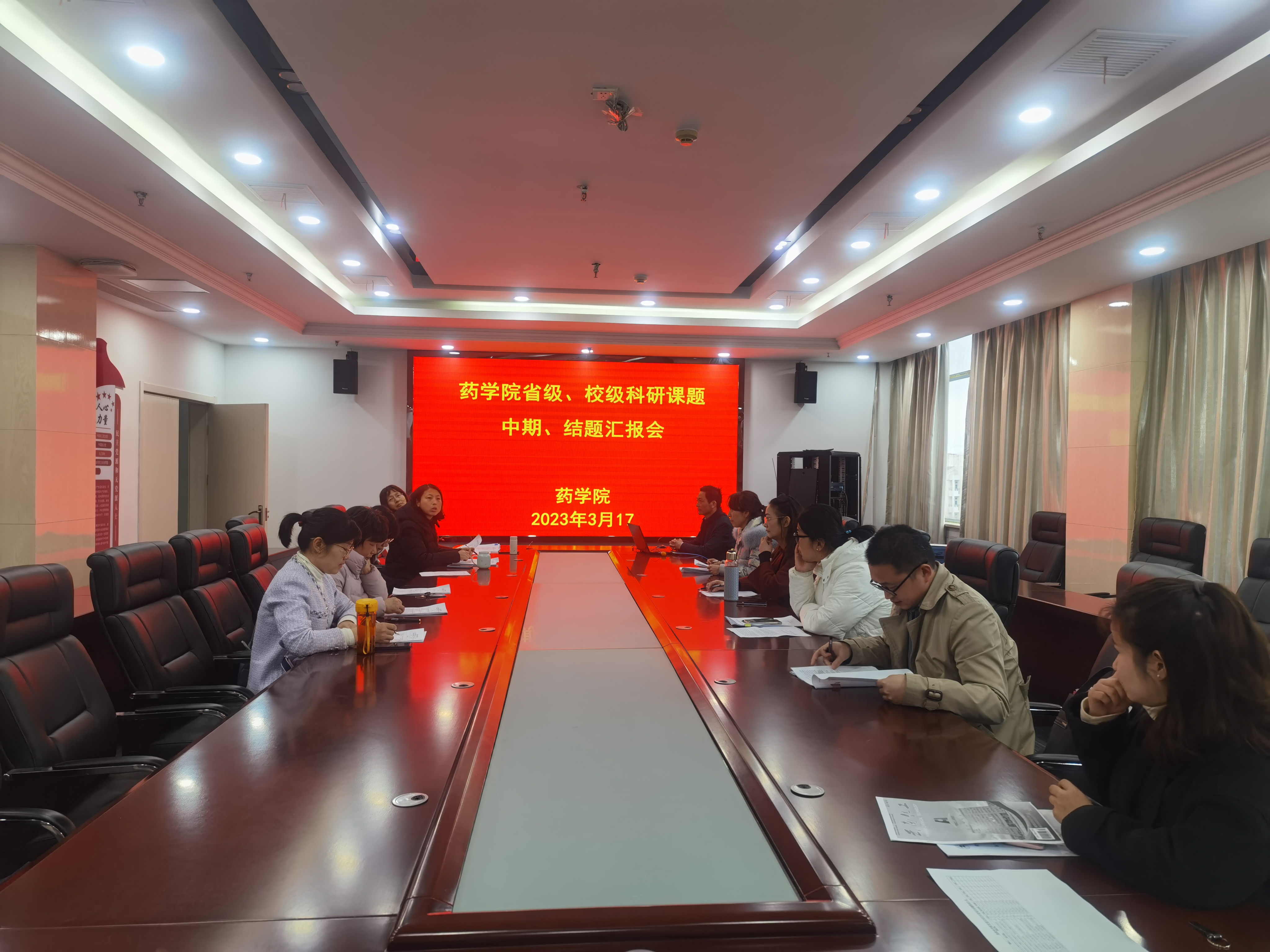 为营造浓厚的学术氛围,以研促教,以教带研,2023年3月17日中午,药学院在图书馆六楼会议室召开省级、校级科研课题中期、结题汇报会。本次汇报会邀请了安庆市立医院药剂科主任齐腊梅作为评审主席,评审组其他成员均为学院具有高级职称的教师,汇报会由药学院副院长杨莹主持。