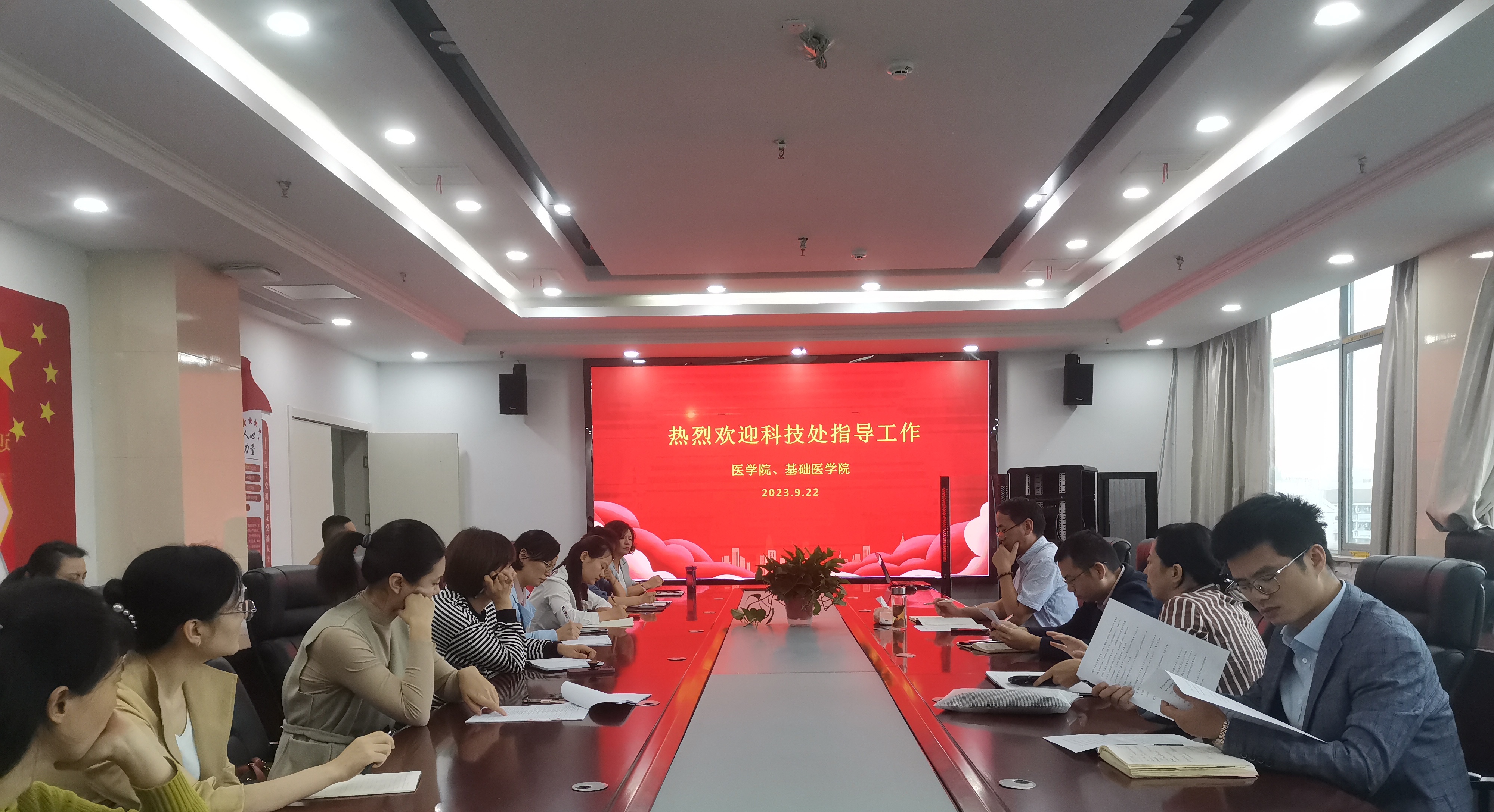 为进一步加强学校内涵建设,对标专升本和“双高”建设要求,以科技发展为抓手,摸底各二级学院的科研工作现状,理清学校目前科研工作的痛点、难点及堵点问题,9月22日,在科技处处长盛辉的带领下,科技处及中医附院科教科一行前往各二级学院调研科研工作,各学院院长、科研骨干教师参会。