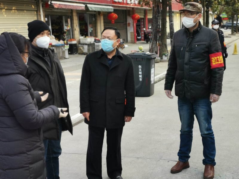 2月16日,校党委书记杨金奎前往安庆市迎江区红旗社区和天柱山机场等处,检查指导我校教职工疫情防控一线志愿活动。
