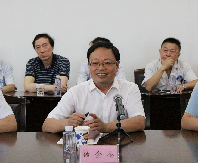 安庆医药高等专科学校党委书记杨金奎代表学校对市人大常委会调研组一行表示诚挚的欢迎,向市人大常委会和各市直单位长期以来对学校和附院的关心支持表示衷心的感谢。他表示,安庆市中医医院作为我省早期成立的中医医院,建院历史悠久、中医药特色明显、医疗技术优势突出。全院上下抢抓机遇努力创建三级中医院;学校正在推进系院一体化,提高医院的医教研综合水平。他要求附院把市委、市政府和各级部门的关怀化为具体行动,切实做好医院的各项工作。他请求市人大常委会和市直各单位继续加大对附院的政策、资金等支持力度。
